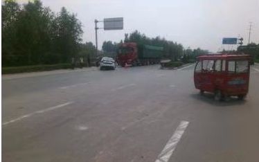 5月15日12时20分许,在衡德高速故城支线县城连接线1km+100m处,无证驾驶电动三轮摩托车的贾某,与驾驶小型轿车(乘坐人:朱某乐、王某)的姜某相撞,随后小型轿车又与梁某驾驶的重型半挂牵引车相撞。事故造成朱某身受重伤。