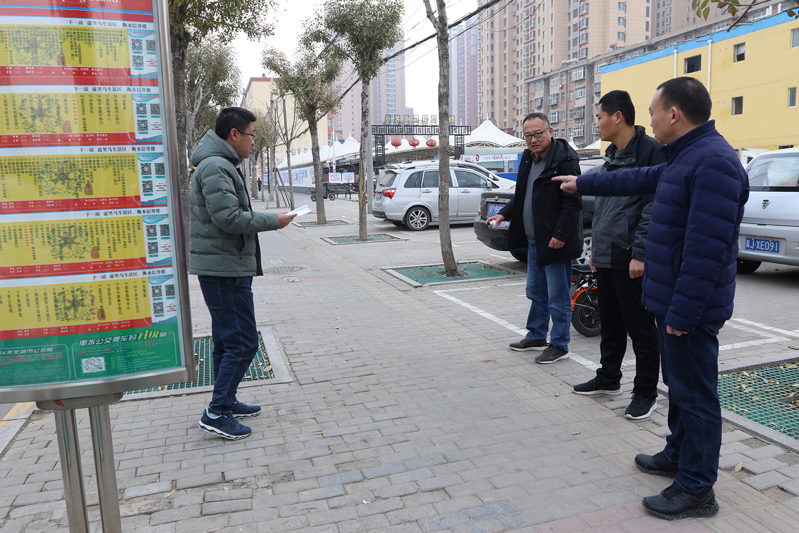 在和平路与庆丰街路口附近的公交站,市公交和市政建设工作人员正在为简易站牌改建候车亭进行现场勘查定址。
