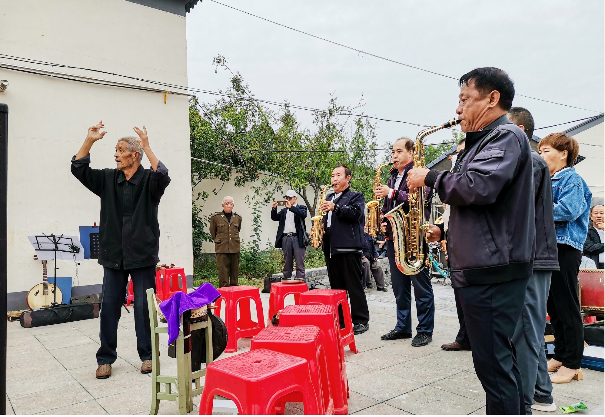 周窝音乐小镇农民乐队为游客演奏。(资料图)武强县摄影家协会供图