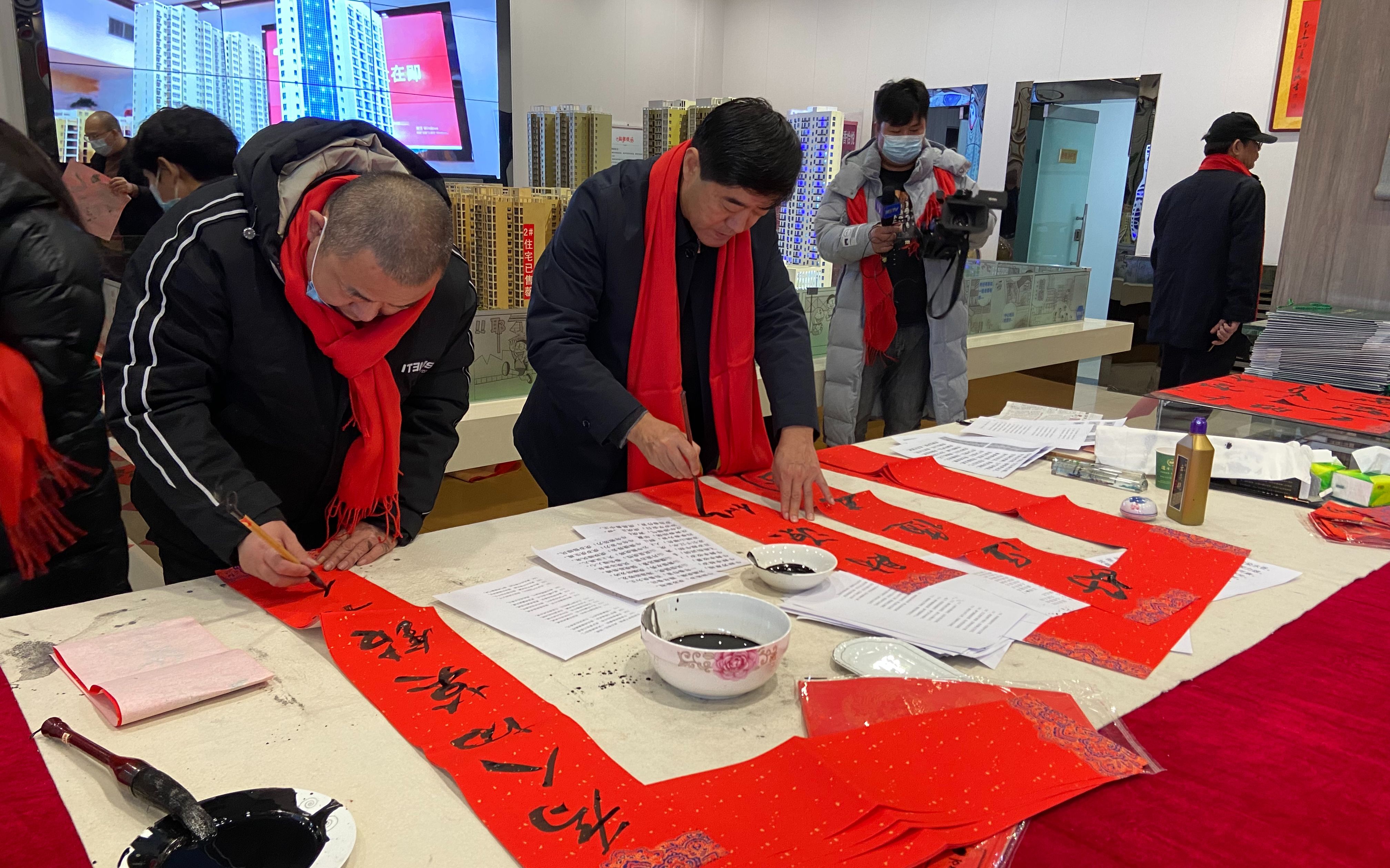 当天上午,书法家们共书写春联和“福”字1000多件,全部送到了百姓手中,让人们在感受中国书法文化魅力的同时,也提前感受到浓郁的节日气息。