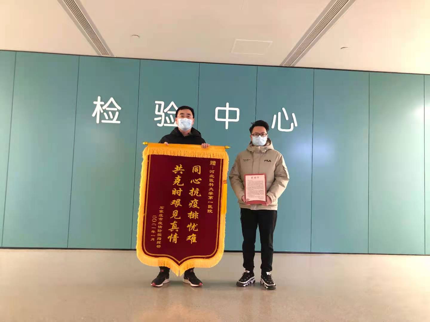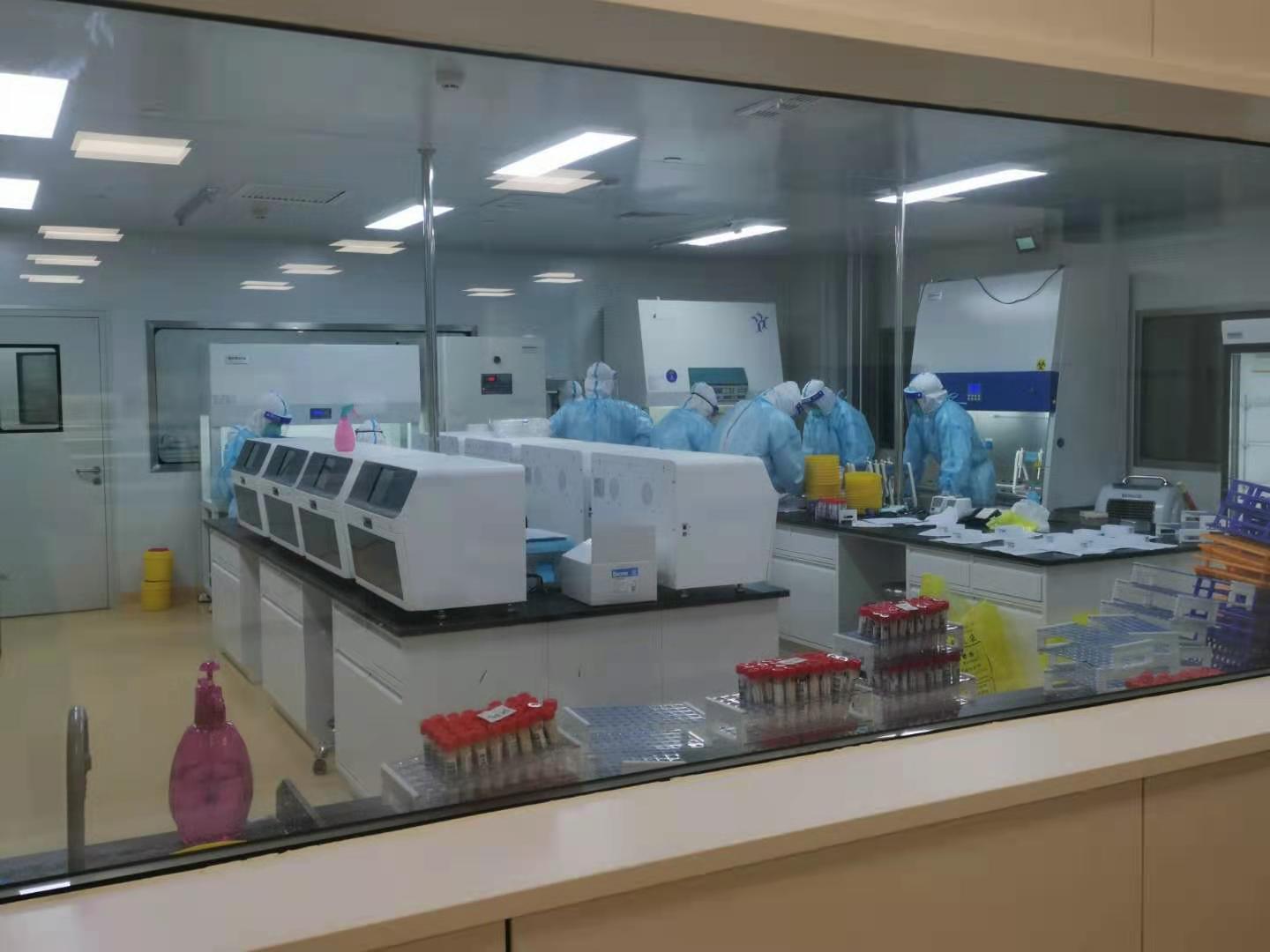 对张长庚主任的这番见解,种肖宇是心悦诚服的。他说,“我是党员我先上,这是战‘疫’的时代最强音。置身在哈院这样具有光荣革命传统的先进集体,有科室团队的良好熏染,我必定尽自己所能,让防控疫情斗争一线扬起哈院的青春旗帜!”1月26日上午,作为衡水紧急支援石家庄核酸检测任务的一员,种肖宇奔赴河北医科大学第一医院支援当地全员核酸检测工作。“河北医科大学第一医院检验中心,系国家公共检测实验室,肩负着藁城区、裕华区、新乐市、平山县等地的样本检测,24小时连轴运转。白天采集的咽拭子送到时,差不多是晚上了。因为任务紧急,必要时不得不通宵工作。只要在岗,我们每个人必定是汗流浃背。但大家都鼓足了干劲,盼着早点儿战胜疫情!”种肖宇胸有成竹地说,提取、加样、PCR扩增、结果分析,每一个工作步骤都关系到核酸检测的质量和安全性,每一次与样本的接触都面临着被感染的高风险。穿着三层防护服、戴着护目镜、手套、靴套,每一分、每一秒都是对体力和耐力的巨大消耗,很快就会感到缺氧憋闷,这难免造成情绪上的波动。对此,种肖宇非常淡定地说,“这就要葆有心态上的积极乐观。因平日训练有素,一进入岗位便忘我地投入进来,很快就适应了工作节奏。”因为每次实验需要3到4人的密切配合才能完成,试验前后要对环境进行清洁和全方位消毒,部分实验用品和医疗垃圾进行分批次消毒灭菌。种肖宇时刻冲在前、干在前,专捡着累活干,他用主动担当,为这个来自各地的团队带来着和谐和高效。