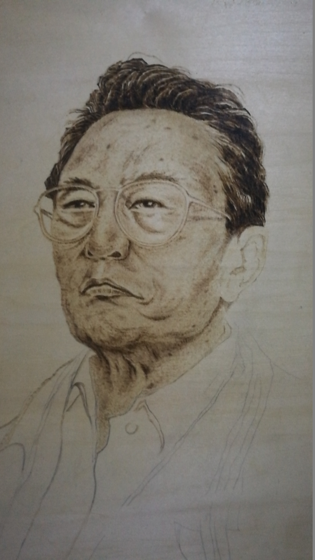 思路一定,马上行动!他翻阅了大量有关钟南山院士的资料,细细体悟院士坚定的眼神和神态,熟记于心,然后握起烙笔,在特制的烙画木板上一点一点精心绘制……经过一周的努力,他终于创作完成了钟南山院士肖像烙画作品,形象逼真而生动,栩栩如生,令人肃然起敬。