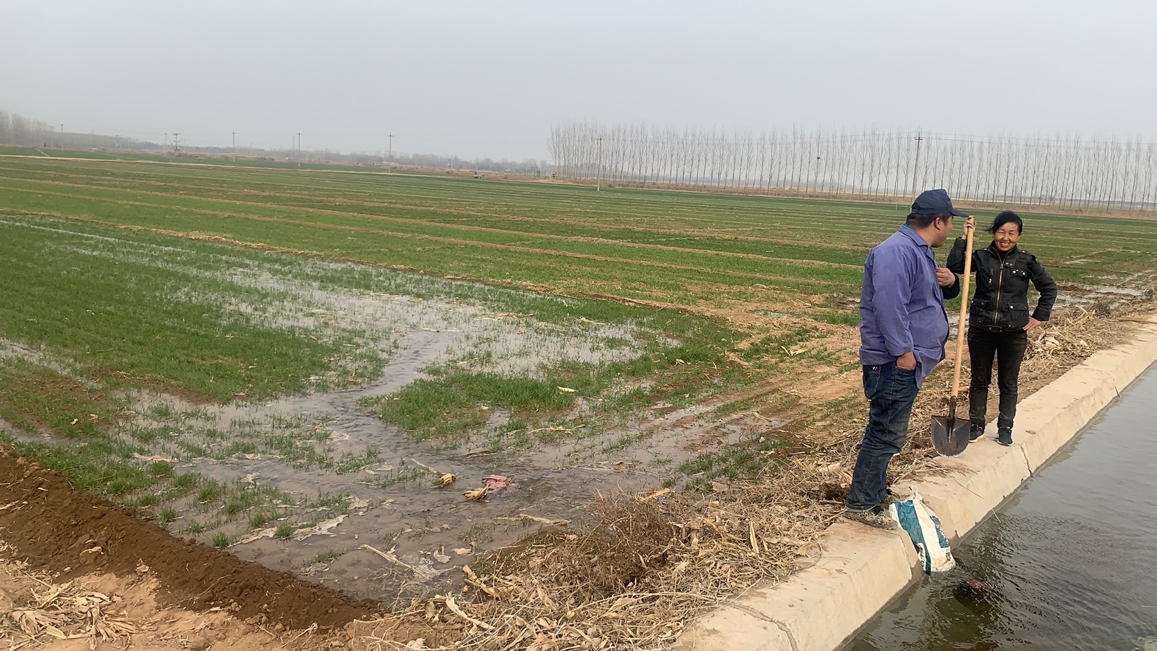 图为街关镇郭湾村村民在用渠水浇地。许学善 摄