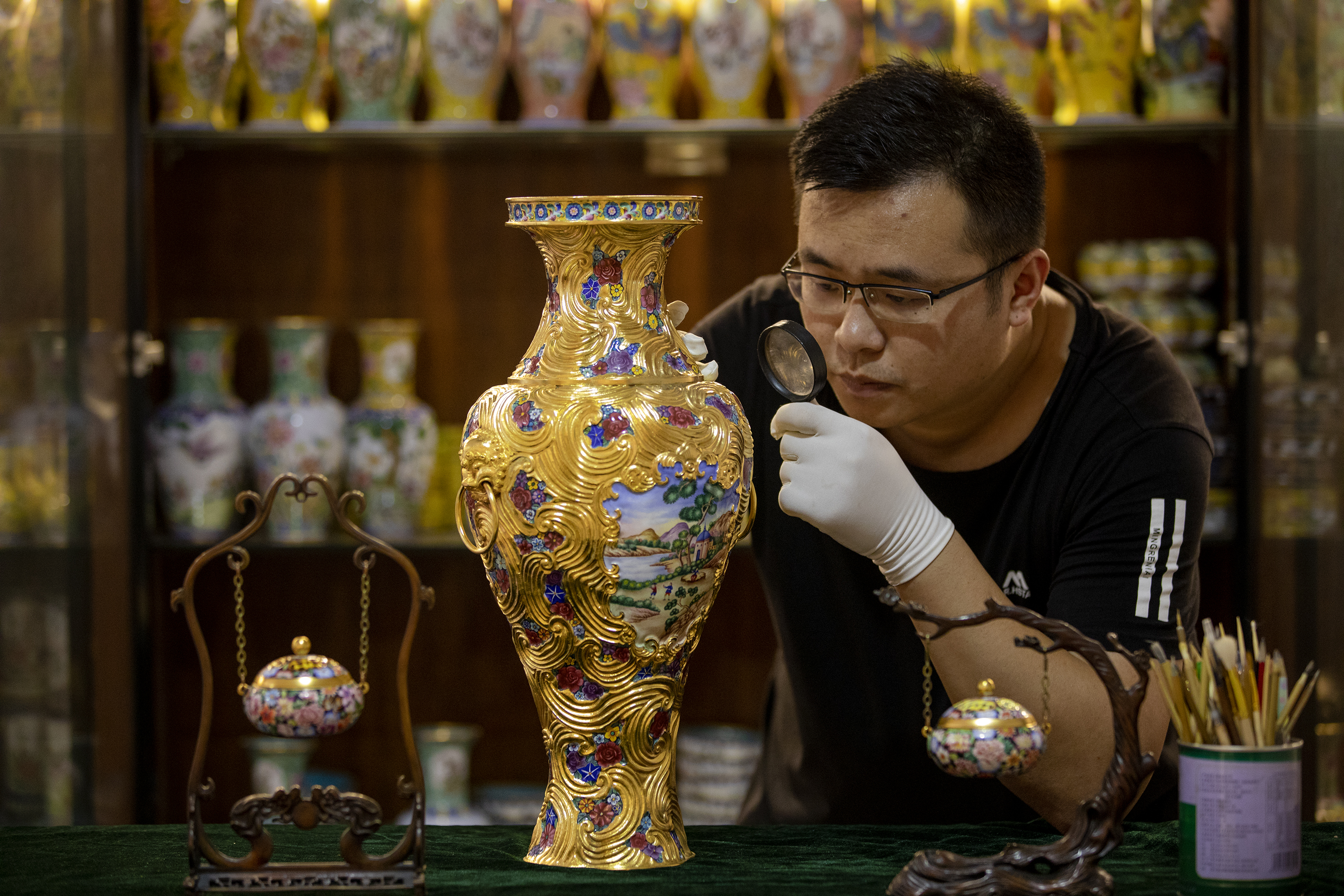 景县铜胎画珐琅技艺以“传承技艺、弘扬文化、回报社会”为己任,积极参与政府组织的各项文化活动,深入融合景县文化,积极参与大运河文化建设,奏响了新时代主旋律。张会芬介绍,公司现已拥有53名传承人,并在传承实践的基础上不断研发创新,尝试将铜胎画珐琅展现到摆件、家居、饰品上来,希望将这项艺术大众化、平民化,让这门古老的艺术走进寻常百姓家,用指尖打造出属于国人的“奢侈品”。