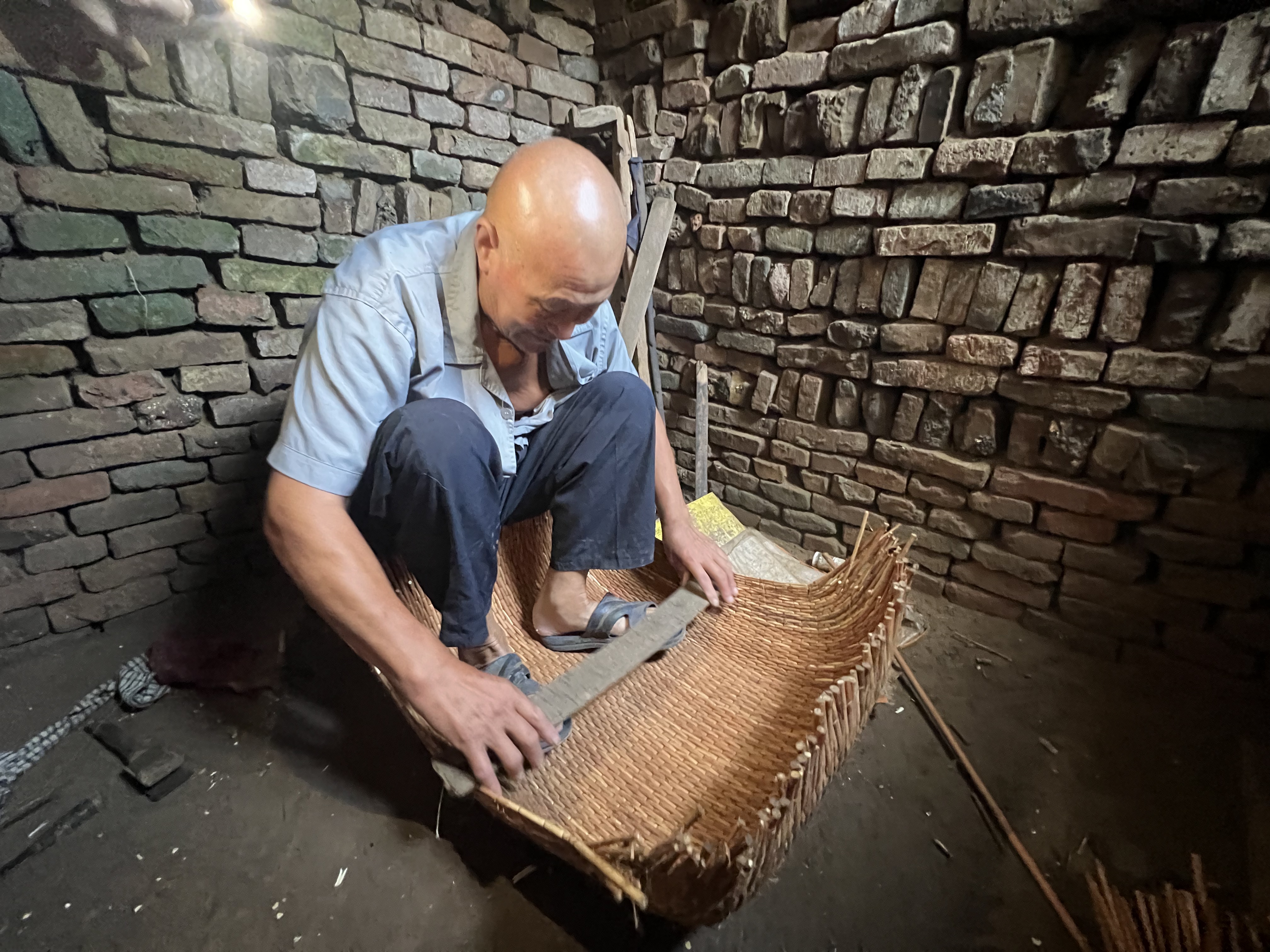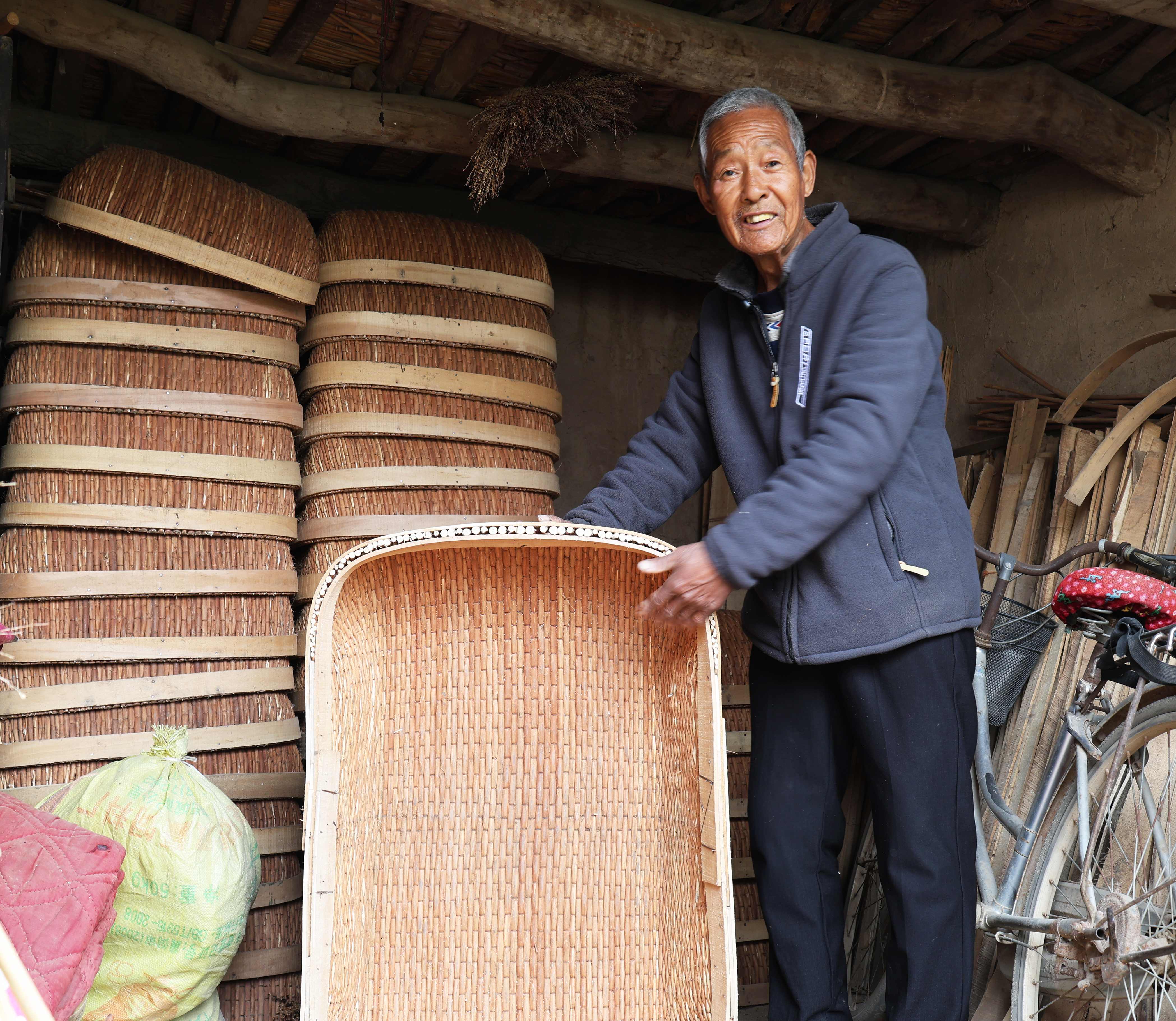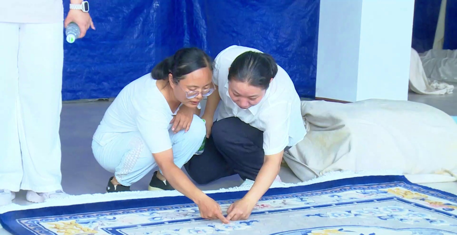 衡水地毯编织手工技艺囊括了纯手工编织技艺的多种不同编织方法,织作的栽绒地毯以合股棉纱为经纬线,色纱为栽绒结,由毯身、衬边和穗头三部分组成,在打栽绒结和过粗纬时因前后两批经线的交叉方式不同,编织技艺方法主要有拉绞、抽绞和藏毯织作三种。其操作都是采用粗细不同的双层经线,粗纬置于双批经线之中,细纬联锁经线和 8 字形栽绒结,经线和栽绒密度横竖相同,因经绞方式不同由此使栽绒结构的缠绕方式、毯基厚度、软硬程度、后背的形状及材料的粗细有明显差异;抽绞则是倒 8 字栽绒结,栽绒结紧锁前后两根经线缩小了毯基的间隔,不使用较粗的纬线和股数较多的材料,毯背有明显的细纬纹路。而拉绞是正 8 字形栽绒结,栽绒结套住后经不与前经缠绕,可用适宜的粗纬和较多股数的材料,栽绒层仔密且松软,毯背不显细纬纹路。藏毯技艺是钎子别置在经线上,操作时捏实一对经,并递材料从后绕一圈,以 2 对经 8字形连环在钎子上顺序编织,拴实、砸平、割开,平绞织做,代绞过纬,不剪荒毛,过粗纬不过细纬,同时利用钎子的不同掌控毯面的薄厚并掌握好花形、花边。