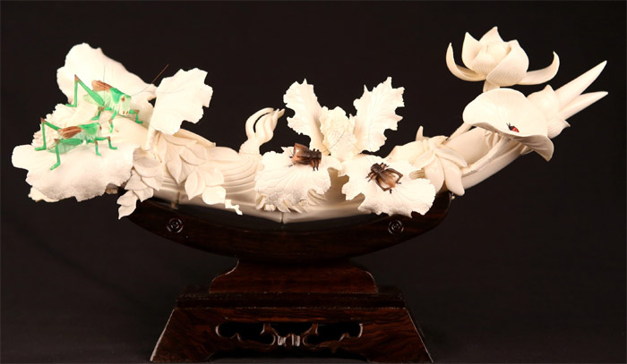 饶阳的骨雕艺术家们在创作上运用的手法让人叹为观止:一件普通的兽骨经过雕刻师们蒸煮晾晒,剔、凿、锯、锉、雕、磨,变成了玲珑剔透的蝈蝈、白菜、龙舟等工艺品,从一根毫不起眼的白骨变成一件珍宝,全靠着雕刻家这一双灵巧的手、玲珑的心以及专注雕刻的灵魂。饶阳雕刻师手中的刀是他们表达自己审美追求的途径。他们先由内向外,一步步减去废料,循序渐进地将形体显现出来,在一次次的减法中,他们悉心感受着各种刀法带来的效果和特殊韵味,这个渐进的过程是探索的过程,是追求艺术美的过程。刻刀对于雕刻家来说,就好像画家手中的笔。雕刻师们以刀为笔在一件件骨料中游走,在反复的雕刻之中找出了最适合自己的表达方式,从而将技术变成了艺术。饶阳这一片土地不是只有前人留下的遗迹和几个有来历的地名,更重要的是有一群擅于传承千年文化并使之发扬光大的能工巧匠。