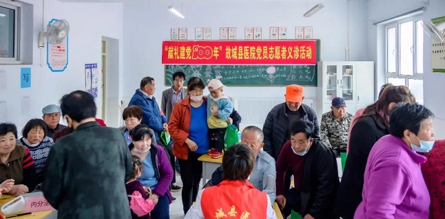 故城县医院党总支为充分发挥党员先锋模范作用,围绕“庆百年、送健康”这一主题,4月24日,副书记王凤杰带领内三科、护理部和心电图室的党员志愿者深入到故城县民族村——里老乡赵鲁屯村,开展送医送药送健康义诊活动,将优质的医疗健康服务送到村民家门口。
