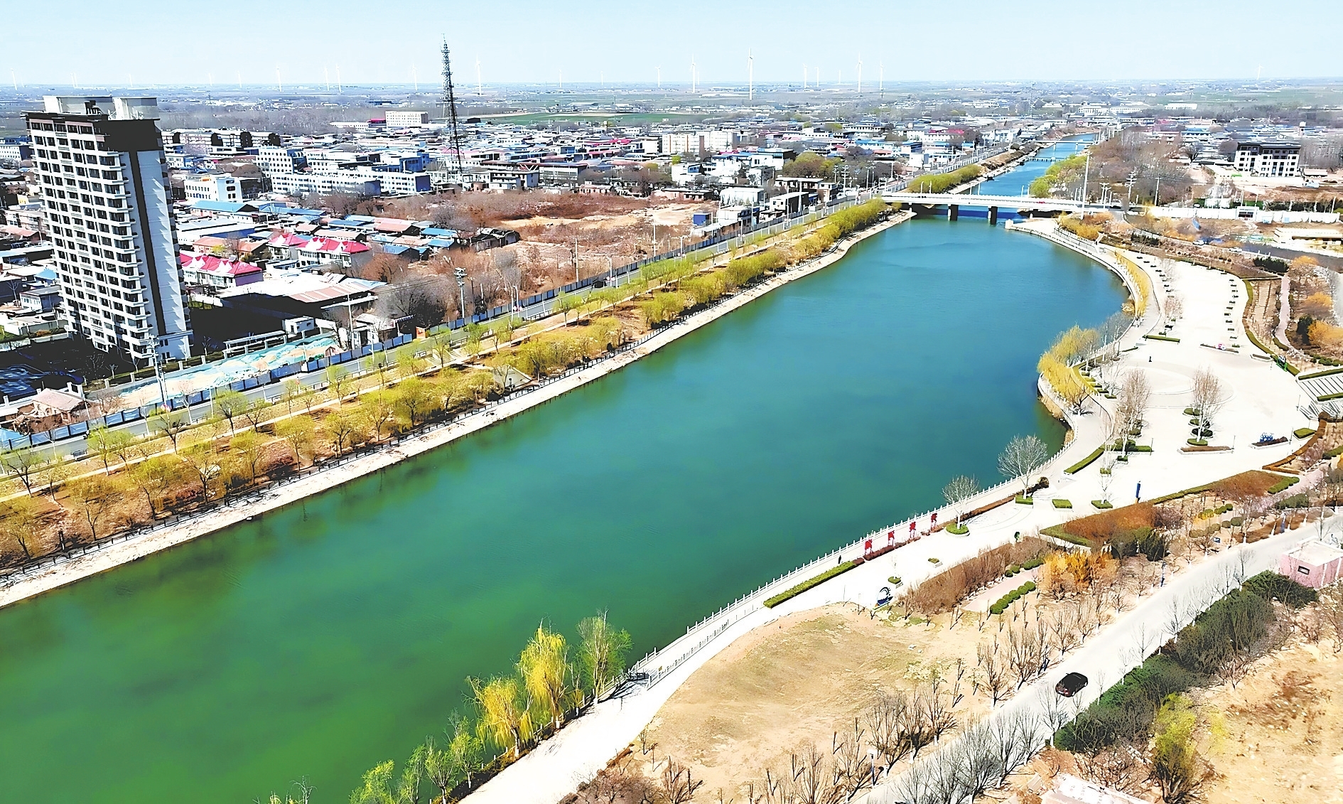 武强县通过实施河湖水系连通工程和农田水利建设,不但改善了生态环境,更增强了群众的幸福感。经过整治,滏阳河碧波荡漾,河畔绿树成荫。沿岸居民空闲时就来河边游玩健身,欣赏美景。县城居民张建军高兴地说:“昔日臭水沟,避之不及;如今水清岸绿景美,人与自然和谐共生。我和家人经常来散步,感觉神清气爽,心情愉悦。”