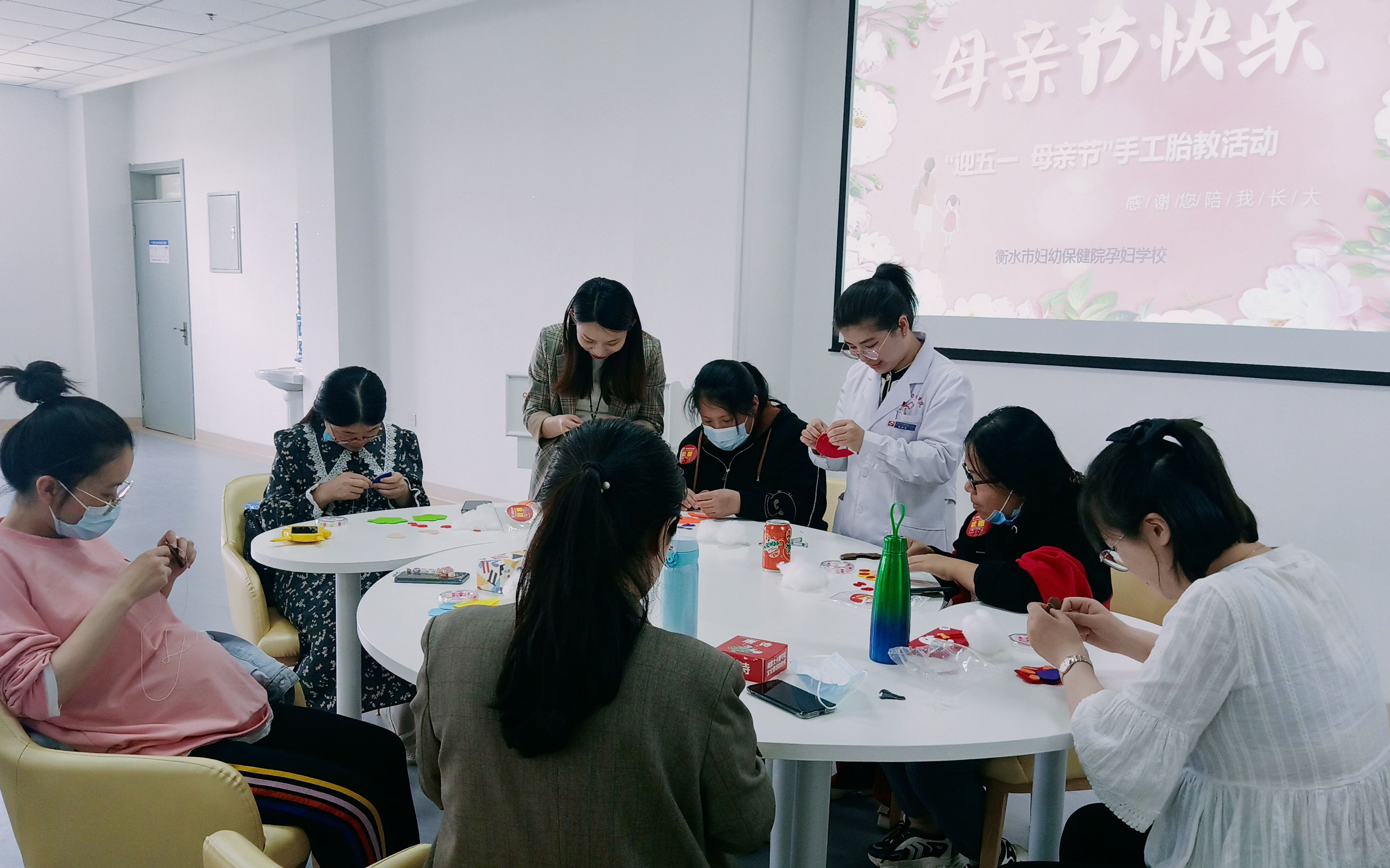 日前,为丰富准妈妈的孕期生活、度过一个愉快难忘的母亲节,衡水市妇幼保健院孕妇学校开展了“母亲节”孕期手工胎教活动。