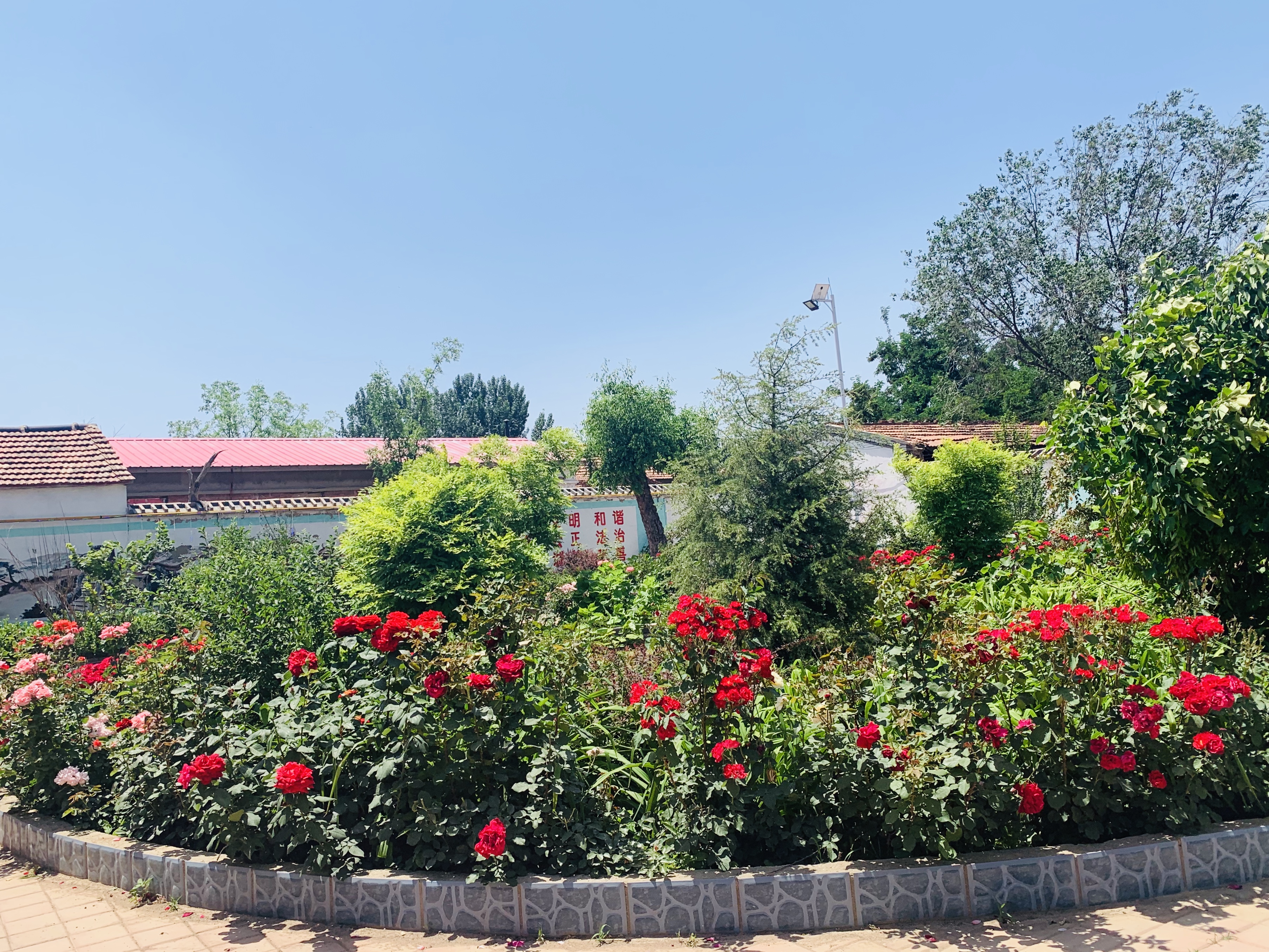 月季花、木槿花、银杏树……走进后塘坡村正中心的小花园,一股夏天的气息扑面而来。坐在凉亭上,一边听着轻音乐,一边在文化长廊中学习法律知识,尽情享受着新农村的宜居生活。