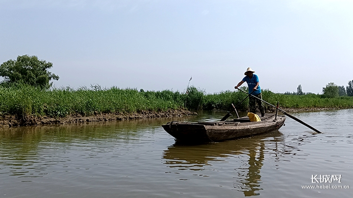 白洋淀的渔民泛舟湖上。长城网记者 高航 摄