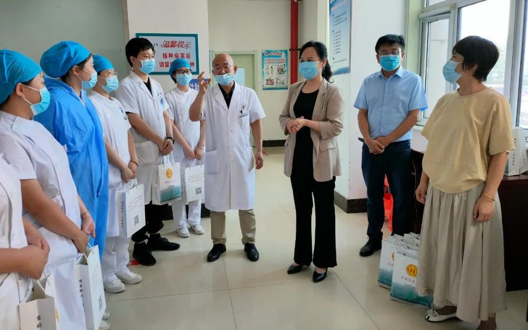 8月3日,阜城县总工会相关负责人一行人来到阜城县人民医院新冠疫苗接种点,对疫苗接种医务人员进行慰问,带来了慰问品,更带来了党和政府的关心关爱、工会组织的温暖关怀。