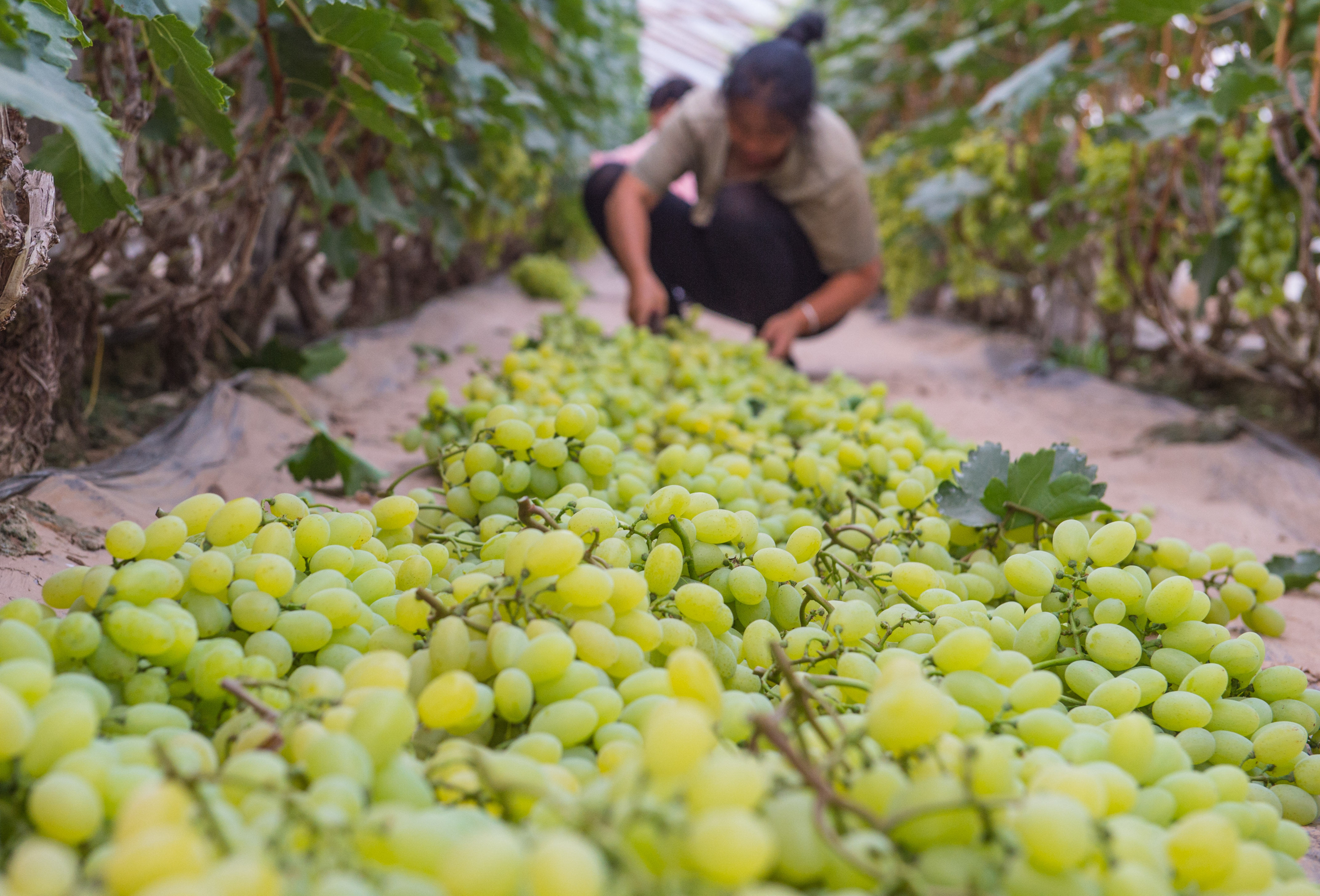农业结构调整带来新景象:全县高油酸花生种植面积5万亩,单产400公斤,总产2000万公斤;葡萄种植面积2千亩,亩产2000公斤,总产400万公斤……
