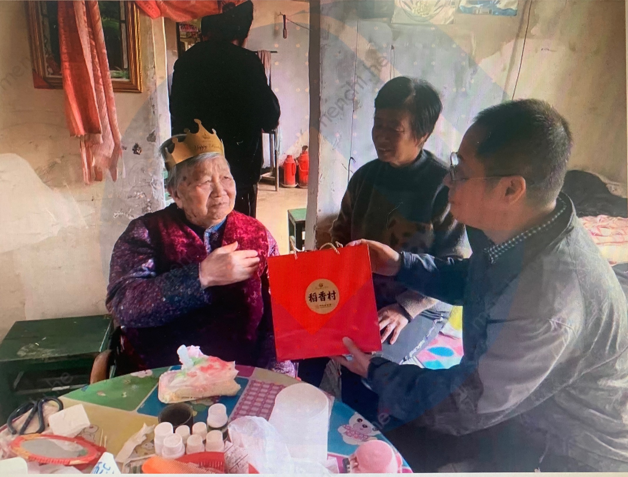 驻村工作队特意为老人们定制了 “九九重阳”“敬老爱老”字样的蛋糕,建行志愿者为老人们梳理头发、修剪指甲。老人们纷纷喜笑颜开,乐在其中。建行志愿者、驻村工作队员和村两委成员还特意到百岁老人以及行动不便的老人家中走访,为老人们送上慰问品和节日祝福。