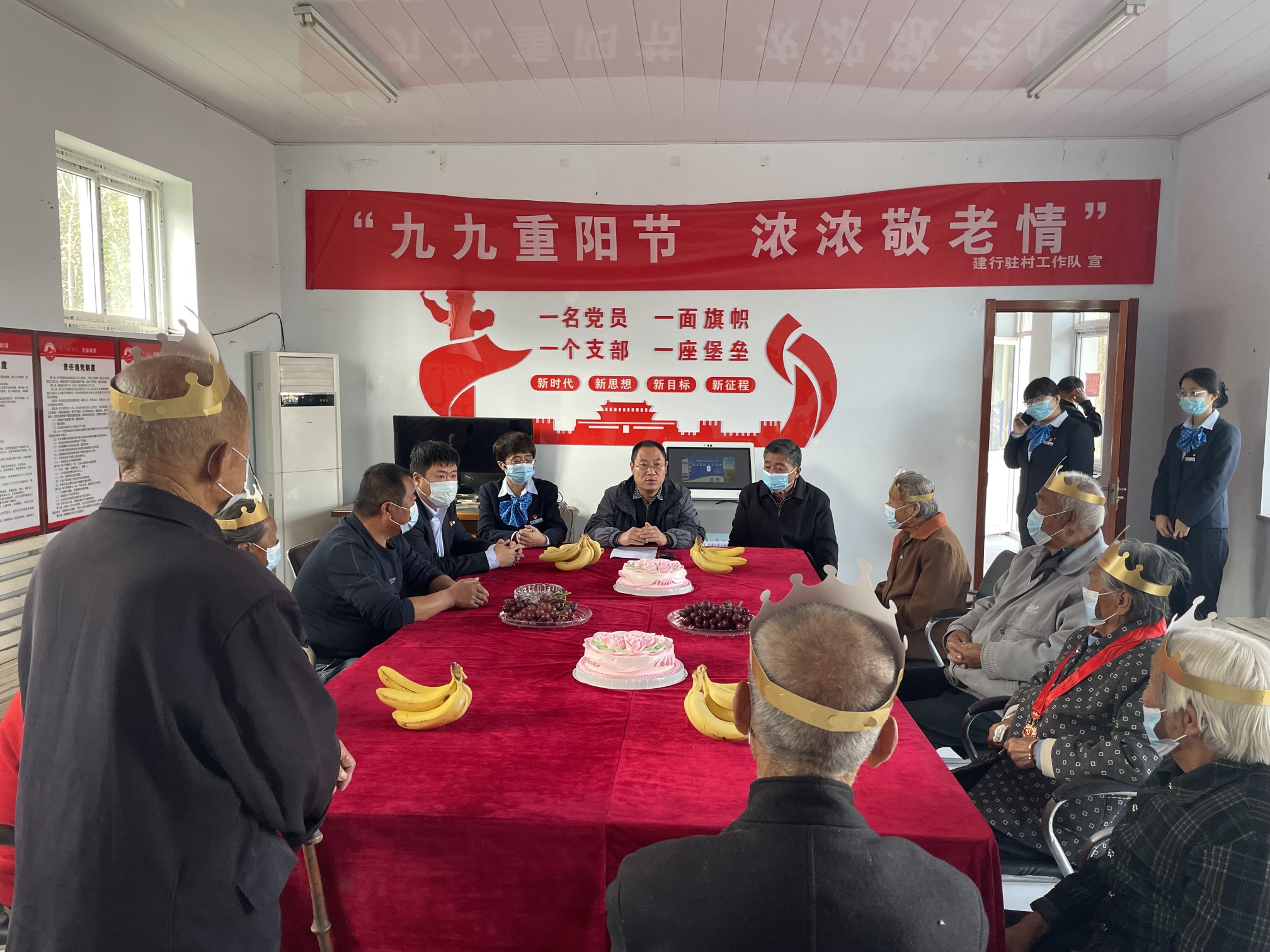 重阳节之际,为切实深化党史学习教育,结合全国文明城市创建和落实“我为群众办实事”,10月13日,建行衡水阜城支行志愿者与驻村工作队员到该行定点扶贫村——阜城县后李庄村组织全村80岁以上的老年人共度重阳节,让老年人切实感受到党和国家以及社会的关怀和温暖。