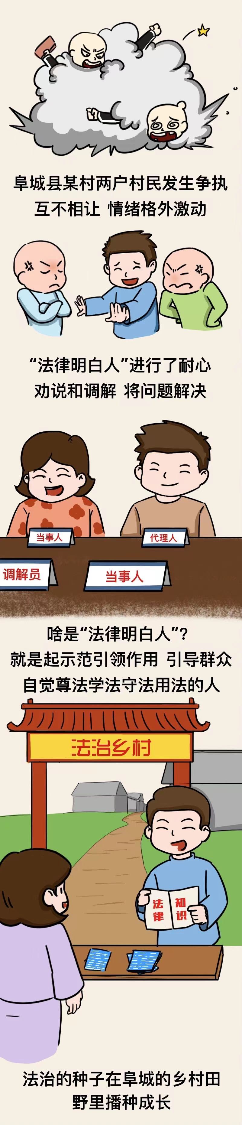 记者从阜城县司法局了解到,在阜城县,像白树阁这样的“法律明白人”有2100余人。邻里之间土地纠纷、家里老人赡养问题、外出务工维权问题等等,有了“法律明白人”的帮助,许多问题迎刃而解。啥是“法律明白人”,啥又是“法治带头人”呢?简而言之,就是在乡村法治建设中,为广大村民起示范引领作用的人,引导和促进群众自觉尊法学法守法用法的人。