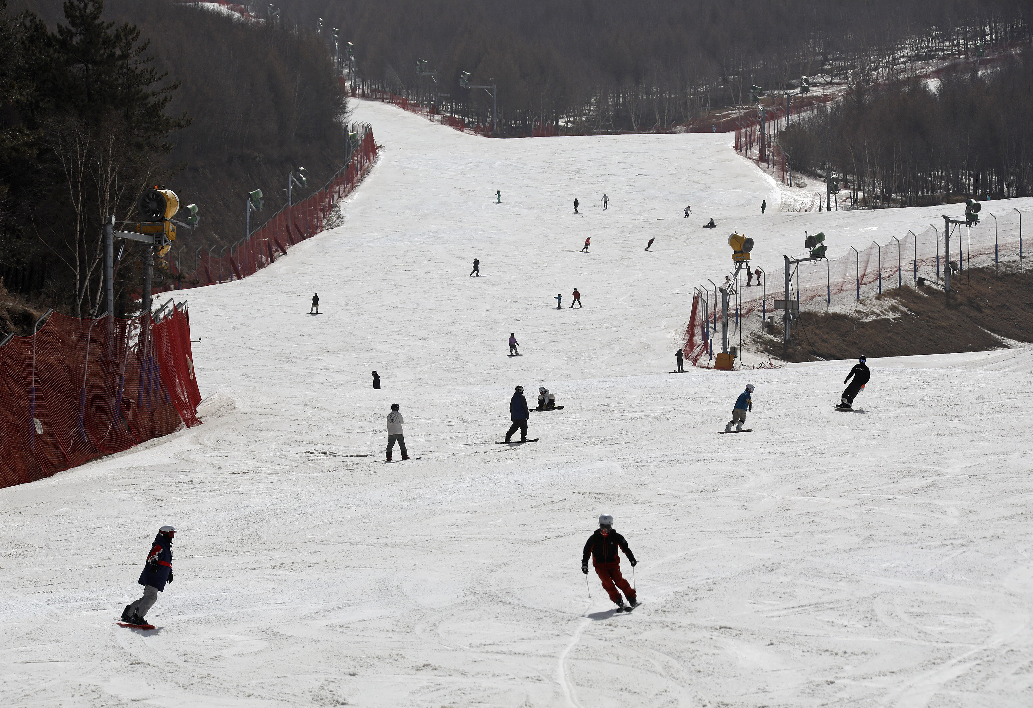 河北崇礼的一家滑雪场内,游客和冰雪爱好者正在享受冰雪运动的乐趣。