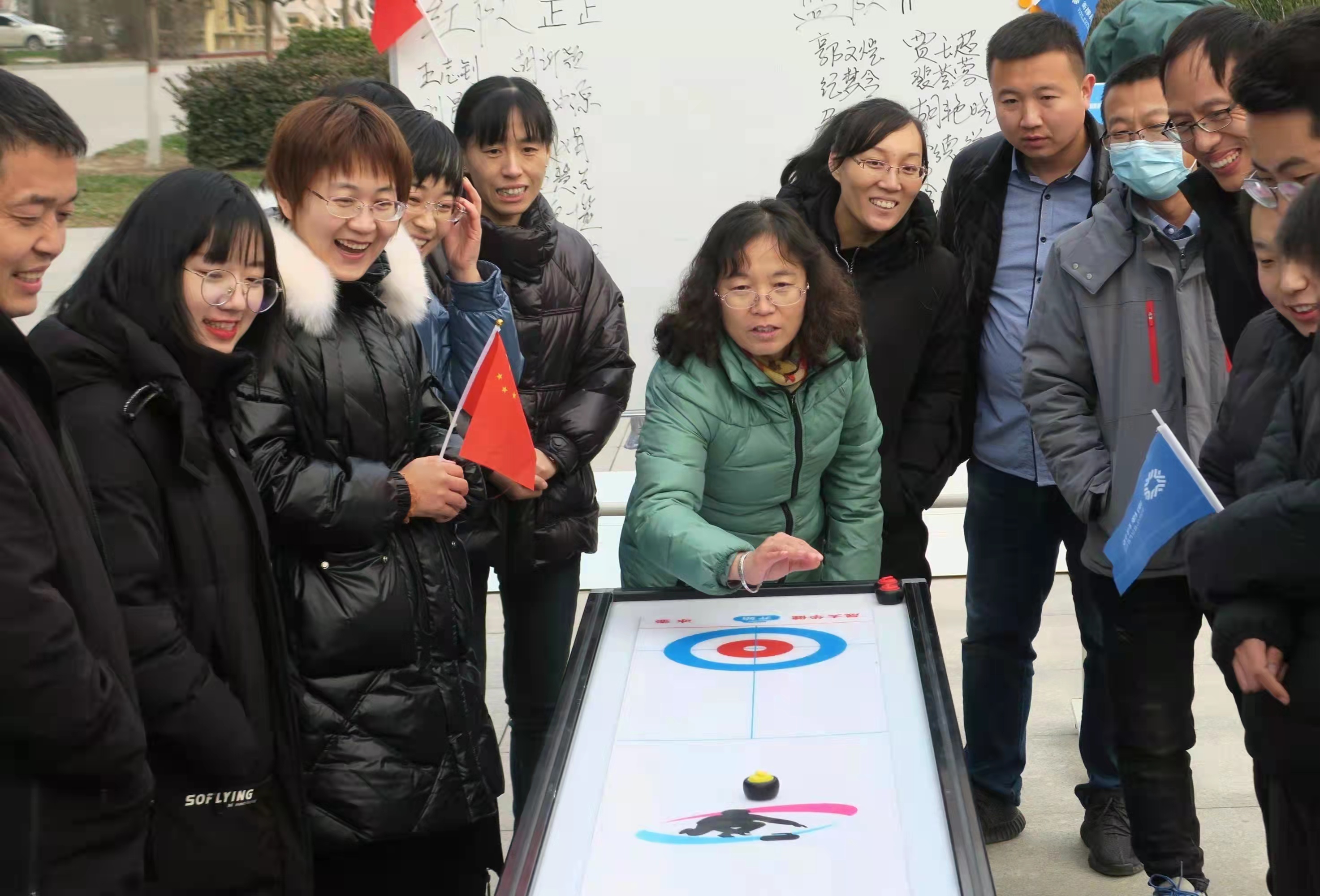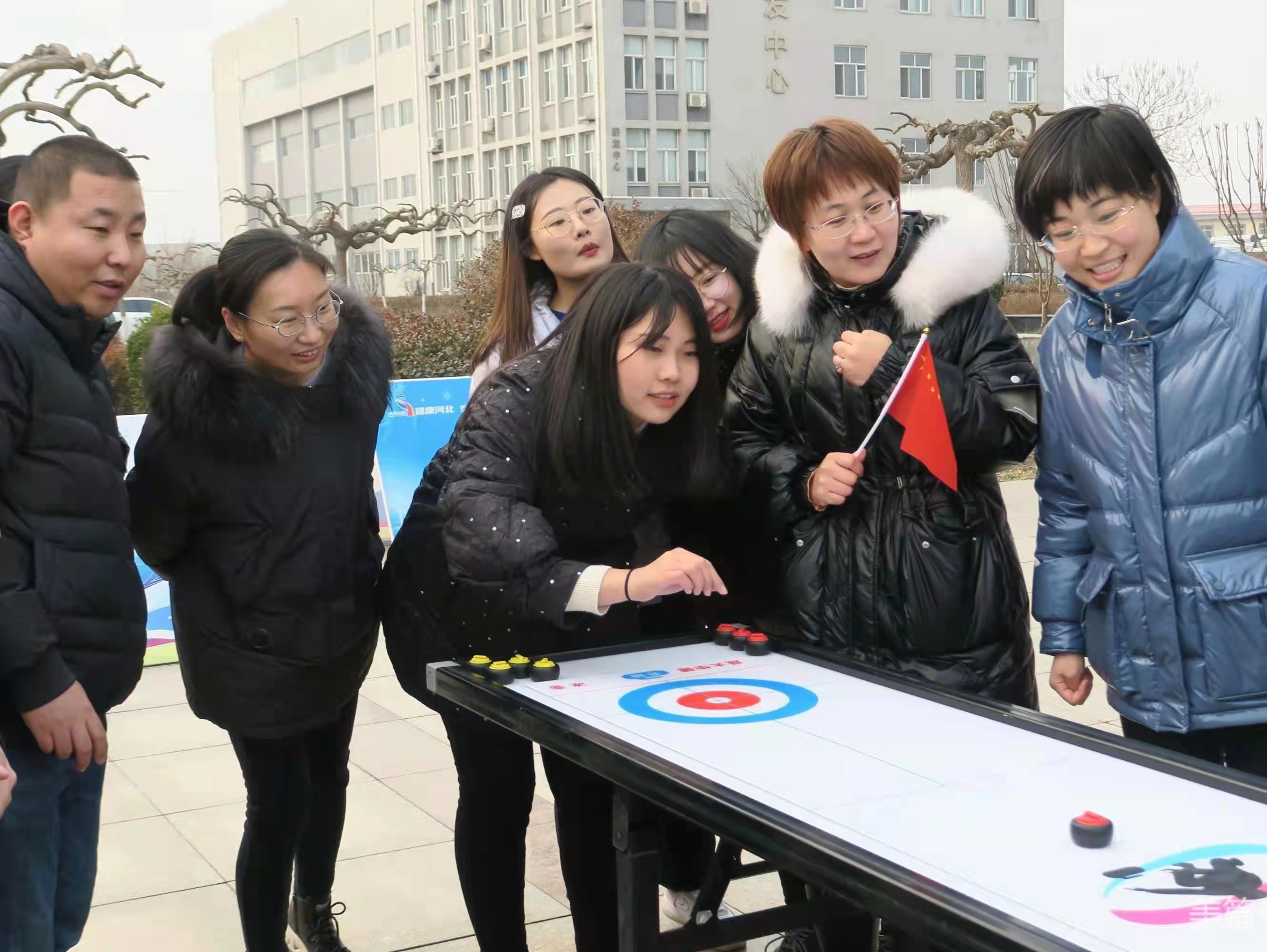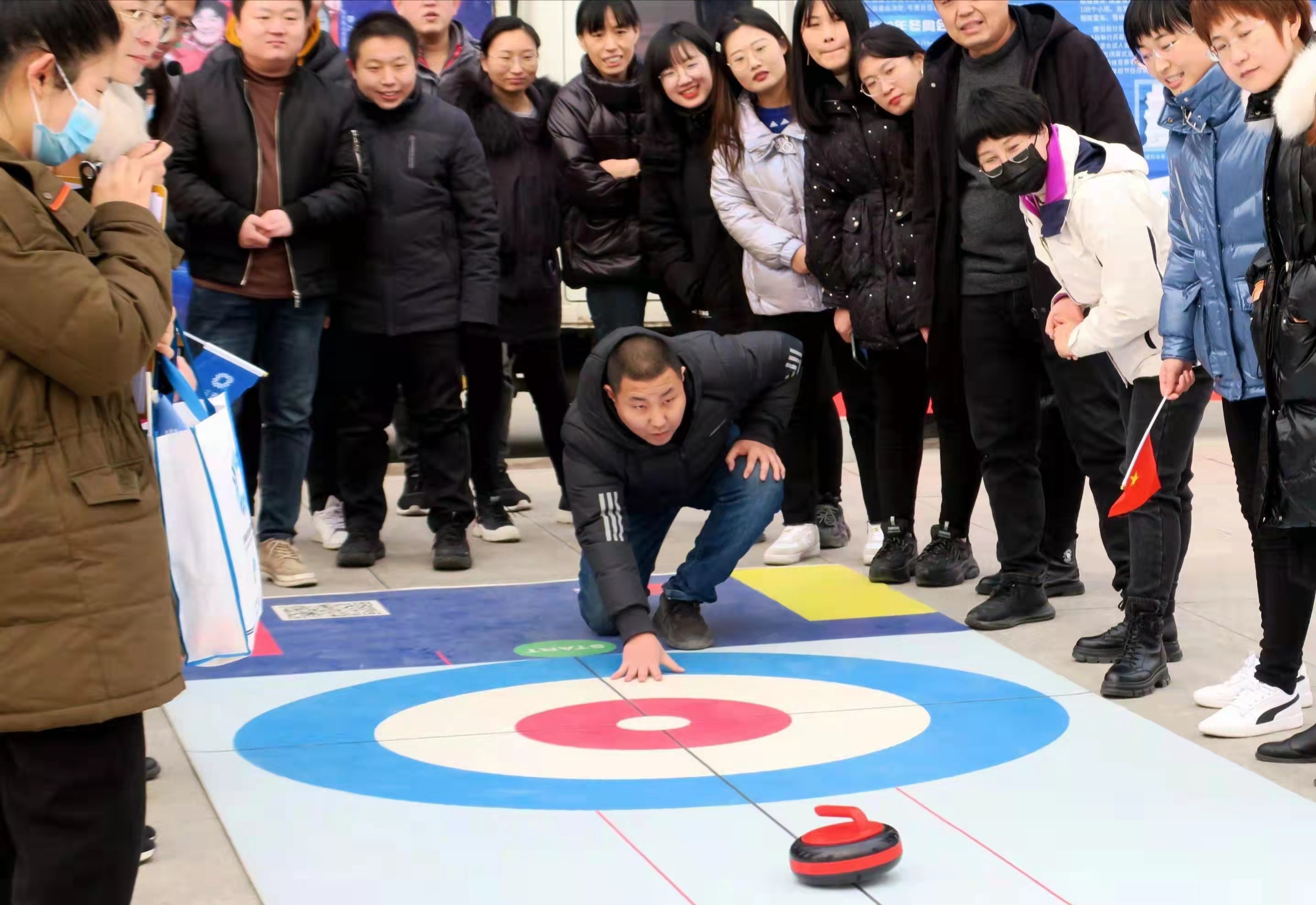 8日下午,在衡水金太阳输送机械工程有限公司,职工们在冬奥知识宣传展板前驻足,了解冰雪知识,社会体育指导员给大家发放冬奥知识宣传单页,并耐心讲解冰雪运动的规则和技巧。在冰雪运动体验场地,大家争前恐后,踊跃参与。“腕部用力,使劲向前推”“撞击对方冰壶”……在社会体育指导员的指导下,大家展开激烈厮杀,现场笑声、欢呼声、喝彩声交织在一起,声声入耳,热闹非凡。