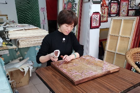 2006年,辛艳君开了一家淘宝店,专卖武强木版年画,随着生意越来越红火,客户的需求也开始多样化。“有人专门要刻版,因为货源紧张,我决定自己学。”她找到了武强年画国家级非遗传承人马习钦,一心学习刻版技艺。为了寻找合适的刻版木材,她三番五次驱车前往沧州,从当地农户手里收购木头。刻刀不离手的日子里,辛艳君手上不知磨了多少水泡,时间久了,水泡又变成厚厚的老茧。