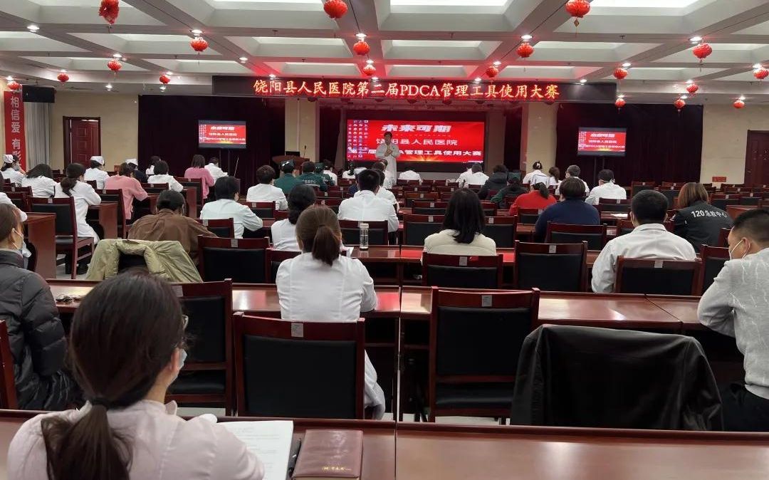 今年1月9日上午8时30分,饶阳县人民医院第二届PDCA管理工具运用大赛在门诊六楼报告厅举行,由医院领导班子成员担任评委,中层以上干部等100余人到场观摩了比赛。