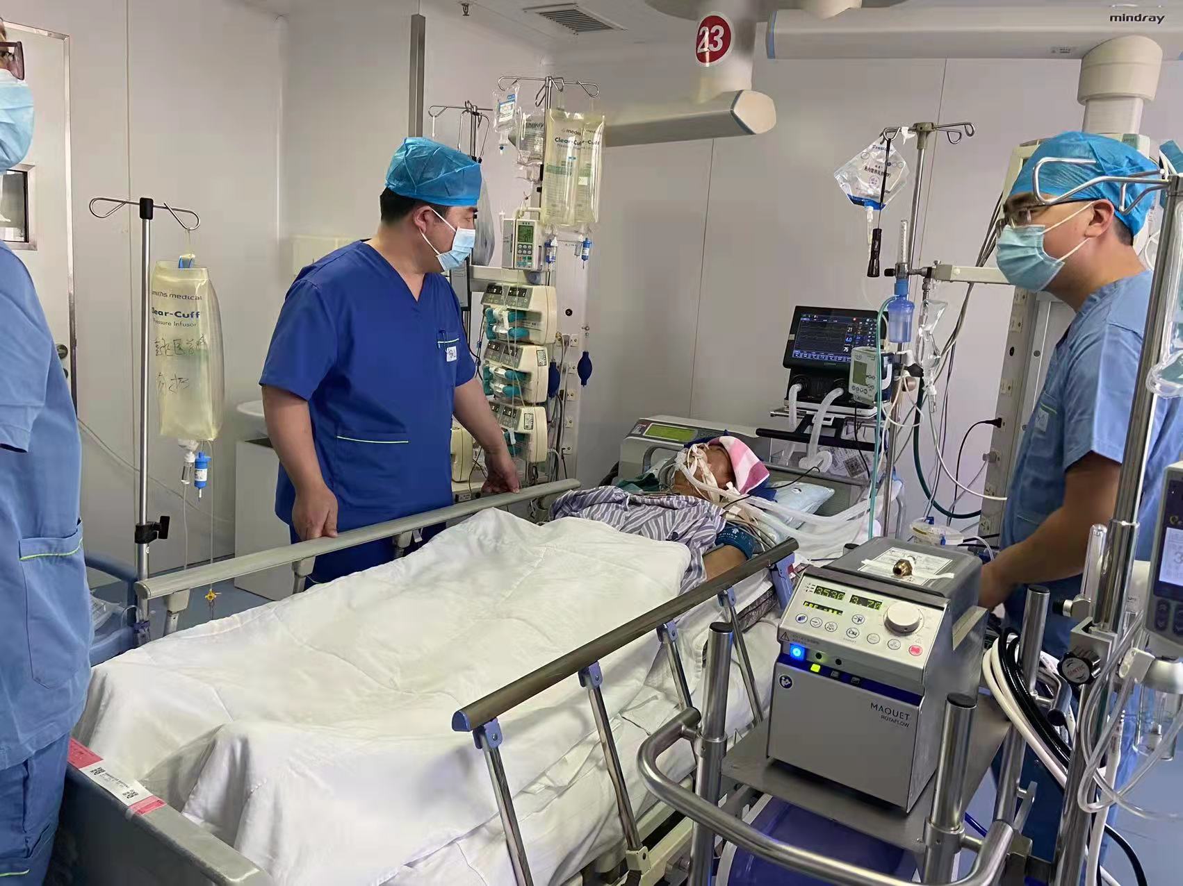 ECMO成功上机,只是战斗的冲锋号,运行中出血、感染等并发症的预防以及脏器功能的恢复还任重道远。为此,医院ECMO团队制定了一系列防护措施和应急预案。在抢救时,初始患者血流动力学极其不稳定,需大量升压药物维持血压,重症医学科的张建军、刘亚晶,以及护士高森、潘英琦,连续作战至第二天凌晨,直到患者血流动力学趋于稳定,在用小剂量升压药物即可维持患者血压时,才成功告一段落。