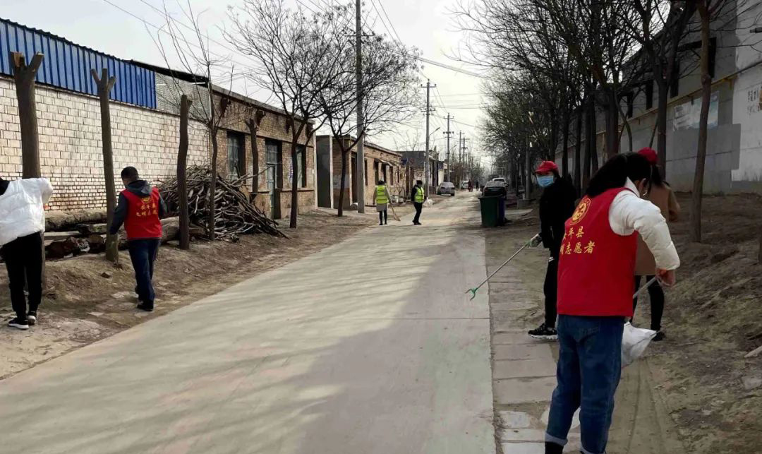 志愿者们在西两洼乡东程赶村开展人居环境整治。谢朝华 摄
