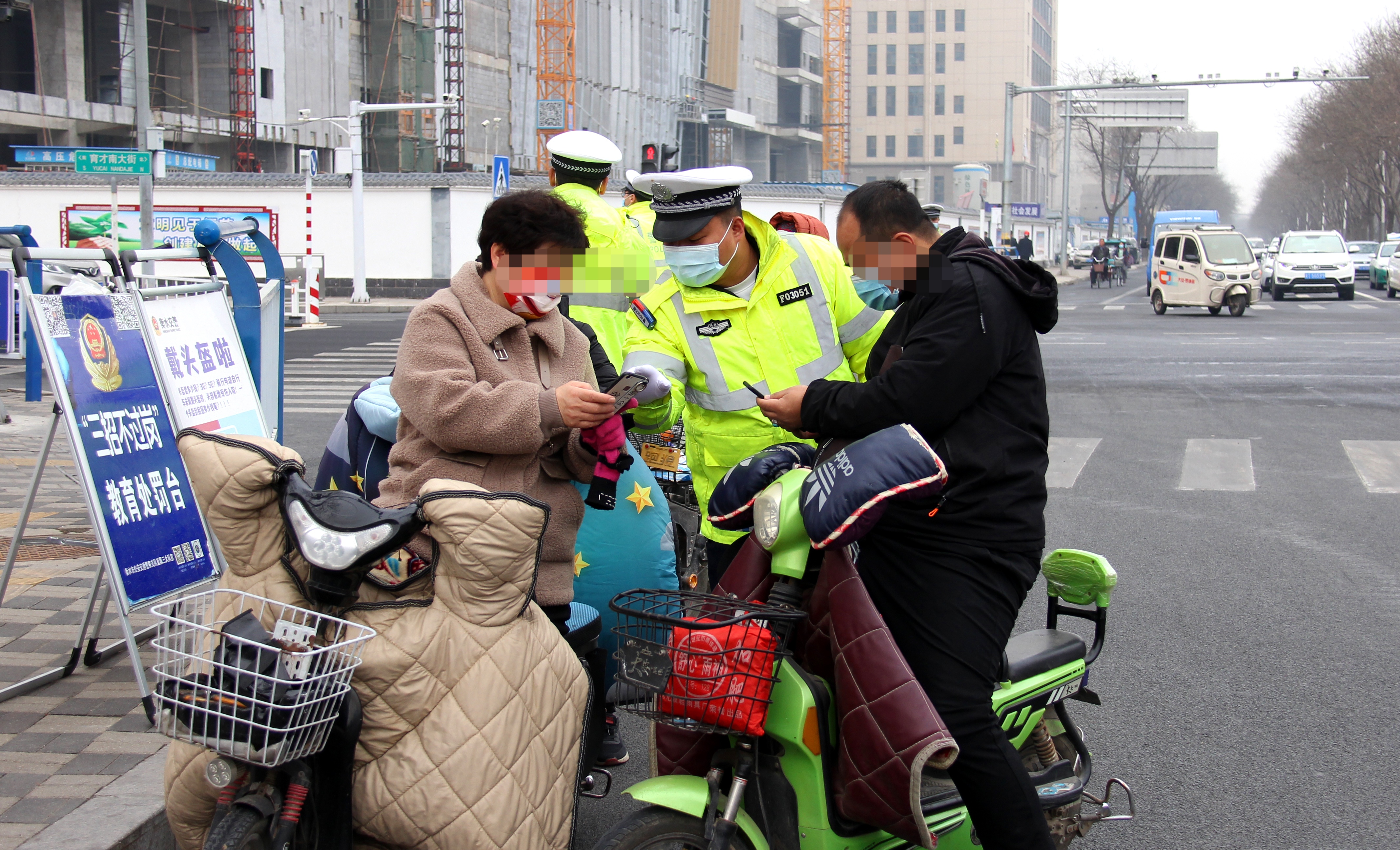 近日,我市交警支队执勤交警在市区路口开展执法行动,查纠骑电动车未正确佩戴安全头盔、逆行等不文明交通行为。从现场情况看,大多数市民自觉遵守交通法规,少数市民没能佩戴安全头盔。