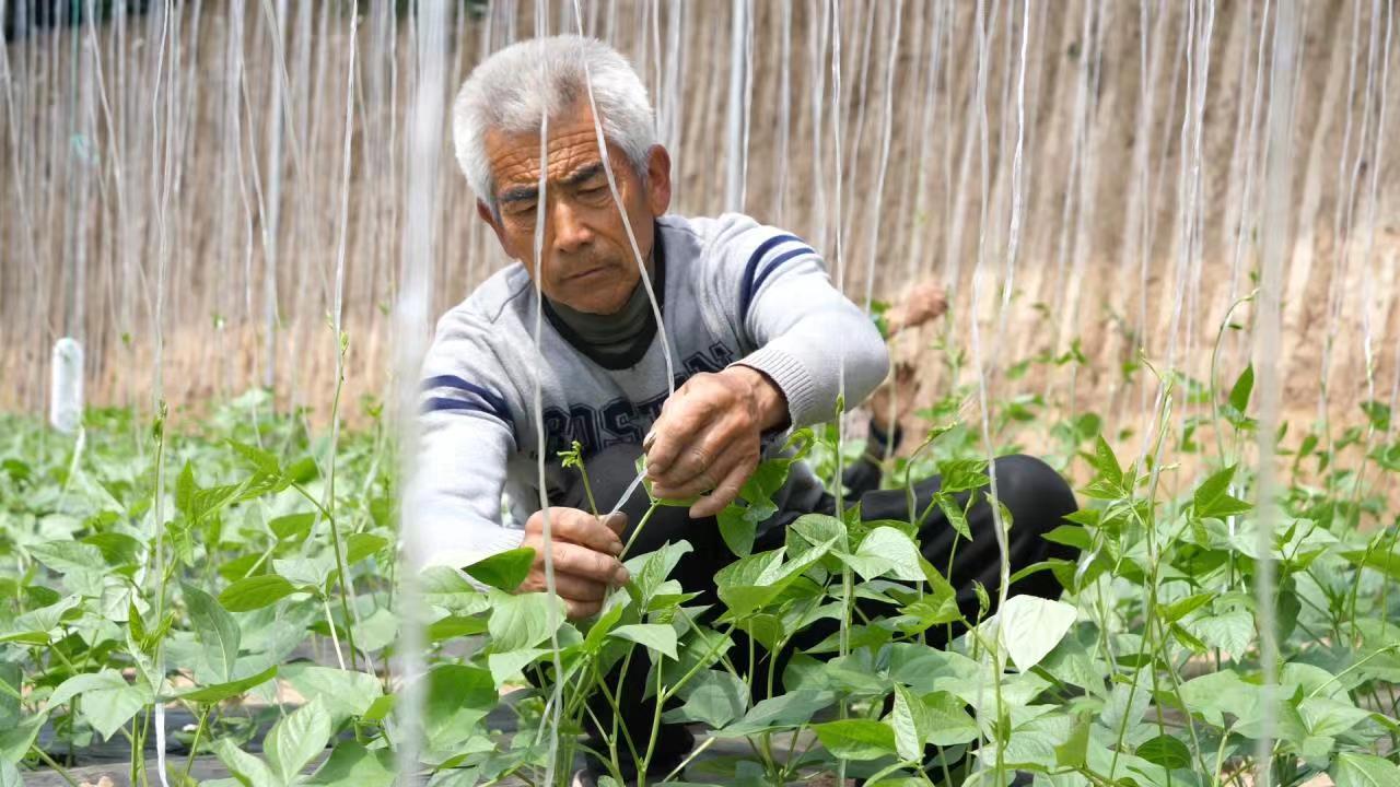 查看豆角秧长势。杜得天 摄