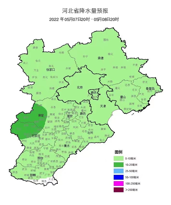 具体天气预报为:5月6日,多云,东北风5到6级,阵风8到9级,气温21到12℃;5月7日,多云转阴,北部有小雨,东北风3到4级,气温21到12℃;5月8日,小雨,气温16到10℃;5月9日,阴,有小雨转多云,气温16到8℃;5月10日,多云,气温23到12℃。