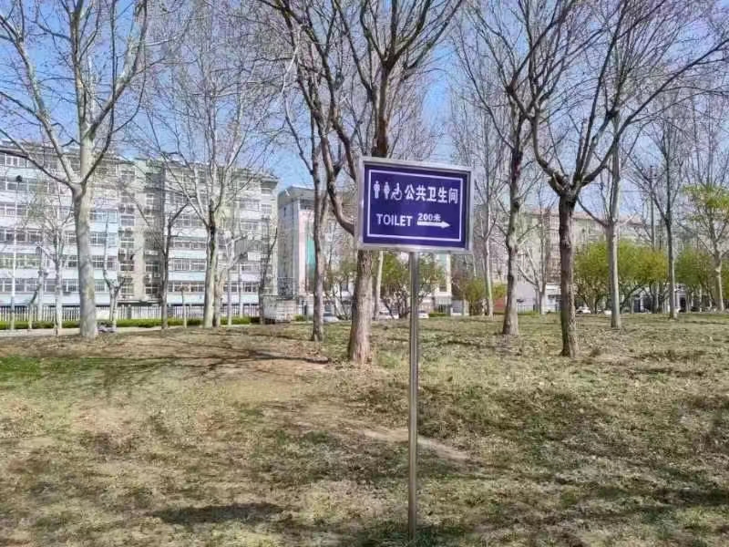 小厕所,是关乎城市文明的“大问题”。今年,为更好地解决市民“如厕难”问题,助力全国文明城市创建,市环卫中心对市区主次干道进行了现场考察、测量统计,在有公厕的主次干道上每隔500米安装1个公共卫生间指示牌。新安装的公厕指示牌底色为蓝色,厕所标志和字体颜色均为白色,标识文字采用中英文对照的形式,方向和距离一目了然,具有美观、清晰、明了等特点。市民按照指示牌能在最短的时间内找到公厕。