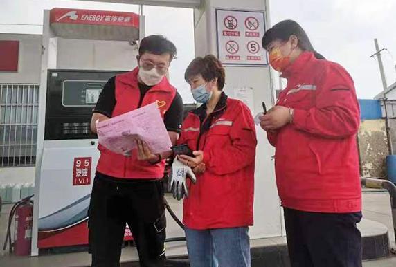 志愿服务小分队队员在加油站宣传防灾减灾知识。张卫玲 摄