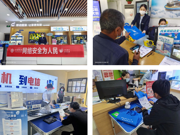 5月16日,移动、联通、电信在自有营业厅内开展宣传活动。在办理业务的同时,向群众发放网络安全宣传资料,并向全县用户发送防范电信网络诈骗公益短信,提升广大群众对安全防范等知识的知晓率,树立自我保护和自我防范意识。