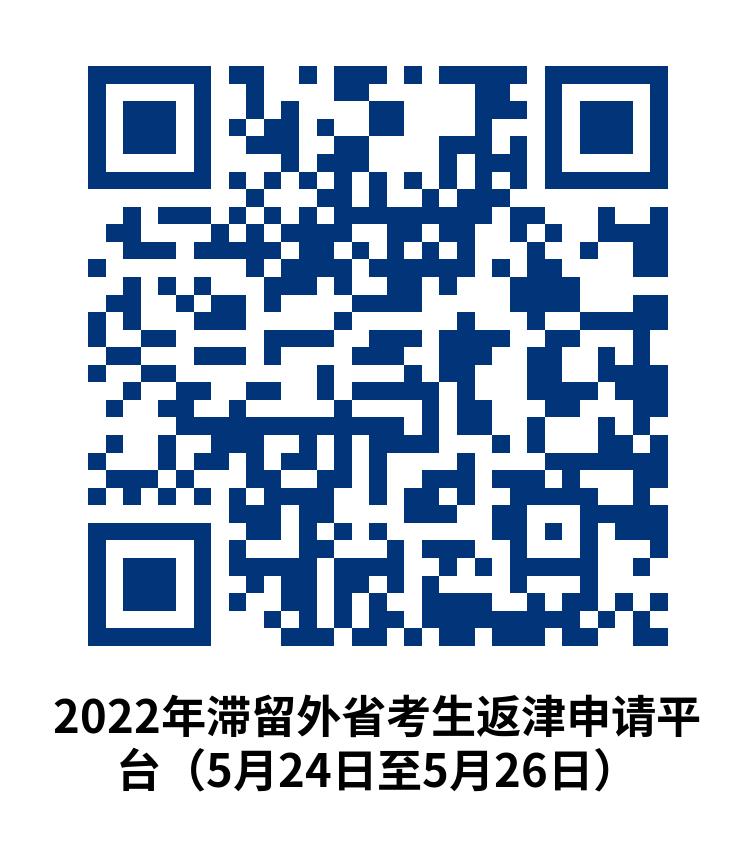 5.尚在外省(区、市)的考生,须遵守当地的防疫政策,于5月24日至5月26日期间,主动通过“2022年滞留外省考生返津申请平台”小程序(https://jiankang.zhaokao.net:9318/),向报名单位提出返津申请,并上传至少两次(抵津前3日和前5日)核酸检测阴性证明、本人实时“天津健康码”和“通信大数据行程卡”的截图。经报名单位审核批准后,考生须于5月27日至5月28日期间返津。考生须在返津前1日,主动向居住地社区(村)报备,或登录“津心办”APP、“津心办”微信小程序和“津心办”支付宝小程序的任意一端,通过首页“来津报备”功能进行在线报备,同时向报名单位进行报备。未按规定履行返津申报程序和来津报备手续的考生,不得参加考试。