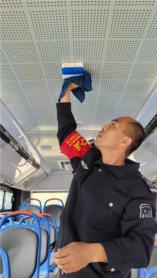 为保障乘客出行健康,张家口市已有130多辆公交车配备了空气净化消毒系统,通过“黑科技”助力,公交车化身移动“空气净化器”,为司乘打造“清新车厢”。