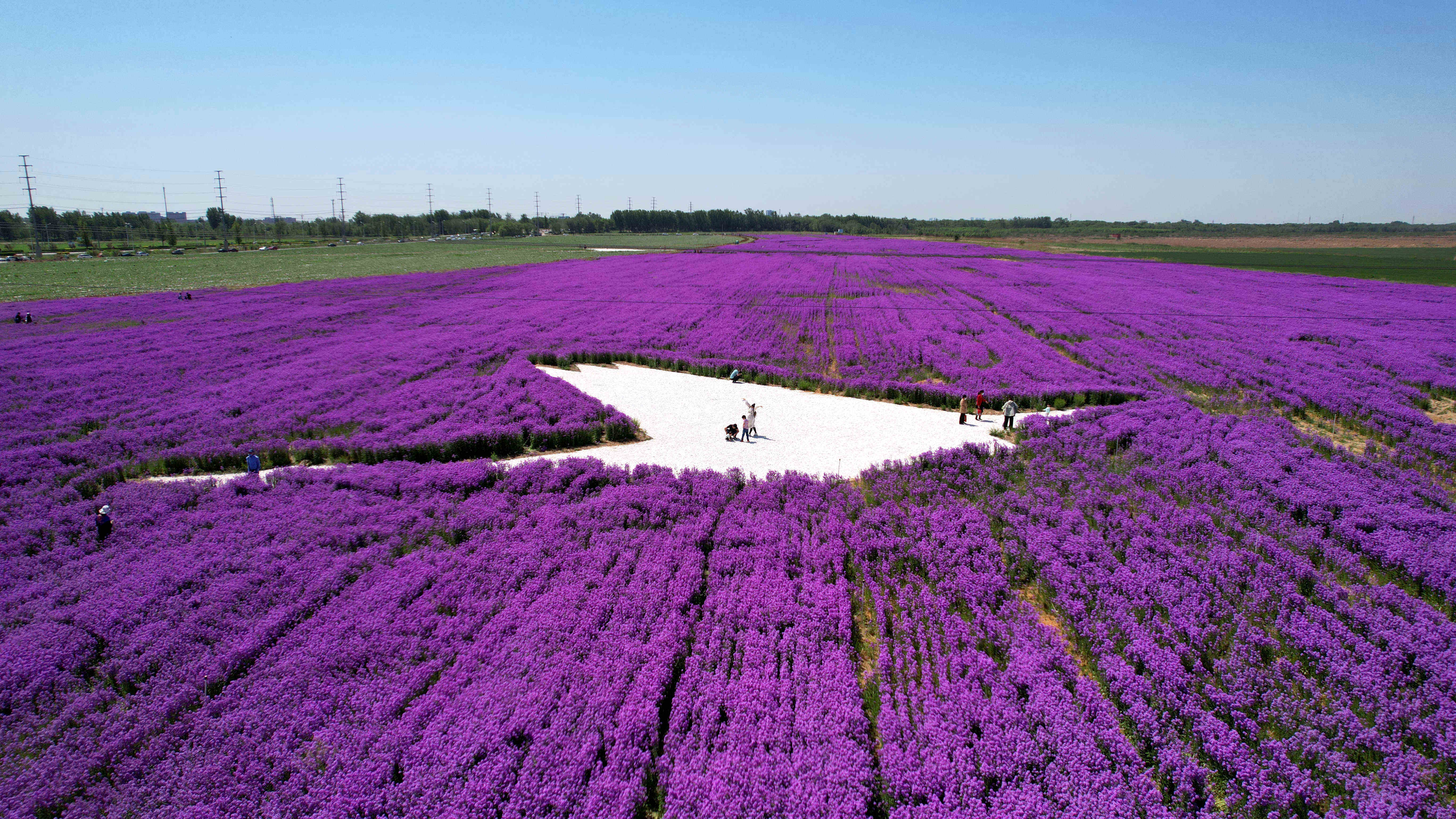 近日,在河北衡水湖畔的大地花海,百亩蓝香芥进入盛花期,艳丽夺目的紫色花朵随风摆动,阵阵花香沁人心脾。慕名而来的游客们漫步在花海中,拍照、驻足,定格这最美的瞬间。据悉,蓝香芥花期为每年的4月至6月。