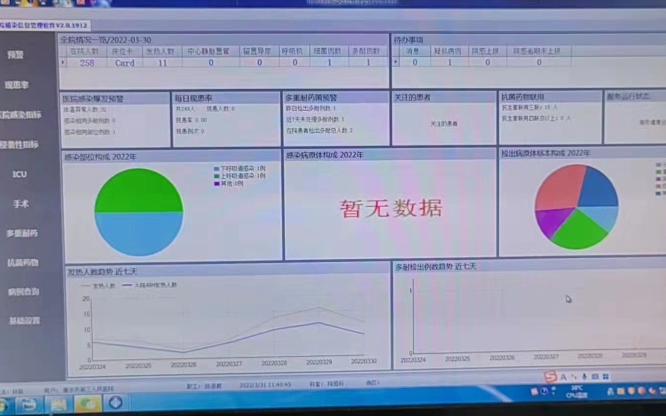 为让全院职工均参与到医院感染防控队伍工作中来,市三院还通过开展院感质控工作,让感控理念变为行动,让规范行为成为习惯,严格落实医院感染预防与控制措施,追求“零”感染,为全院职工和患者的健康保驾护航;医院还利用院感监测平台建立动态的感染信息数据库,对医院患者感染资料进行监测、分析、统计、查询,实现对病人从入院到出院全过程的在线监测。