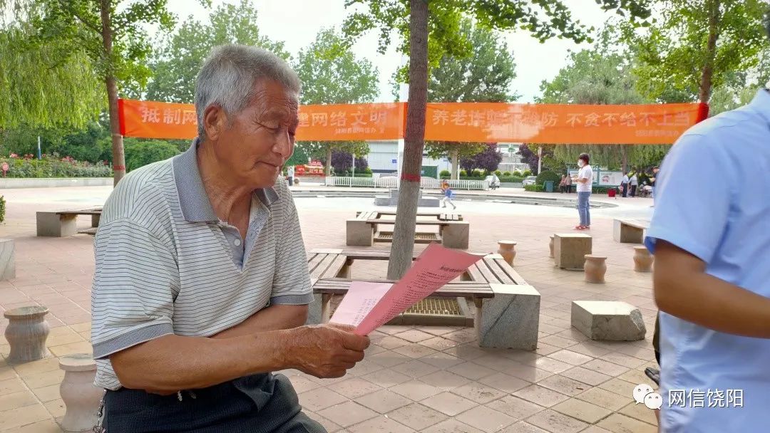 为进一步提升老年人识别网络谣言、电信诈骗的能力,引导老年群体安全用网,文明上网,5月24日,饶阳县委网信办开展“网络辟谣及防范养老诈骗”宣传活动。