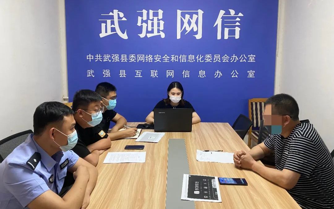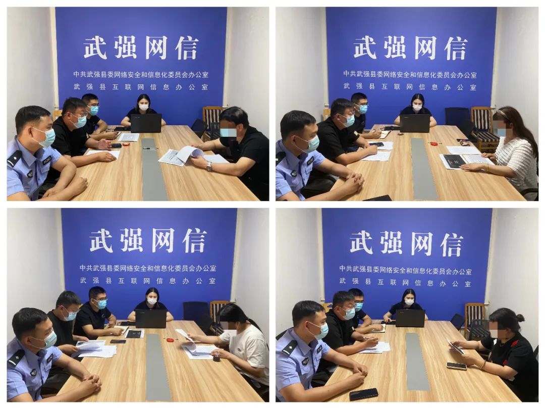 近日,我办监测巡查发现“**橡胶制品”“**医疗器械”“**热能设备公司”等网站存在违法违规信息。5月27日,在市网信办的指导下,武强县网信办联合县公安局网安大队依法依规对五家违法违规网站负责人进行约谈,深入推进“清朗武强•燕赵净网2022”网络生态治理专项行动。