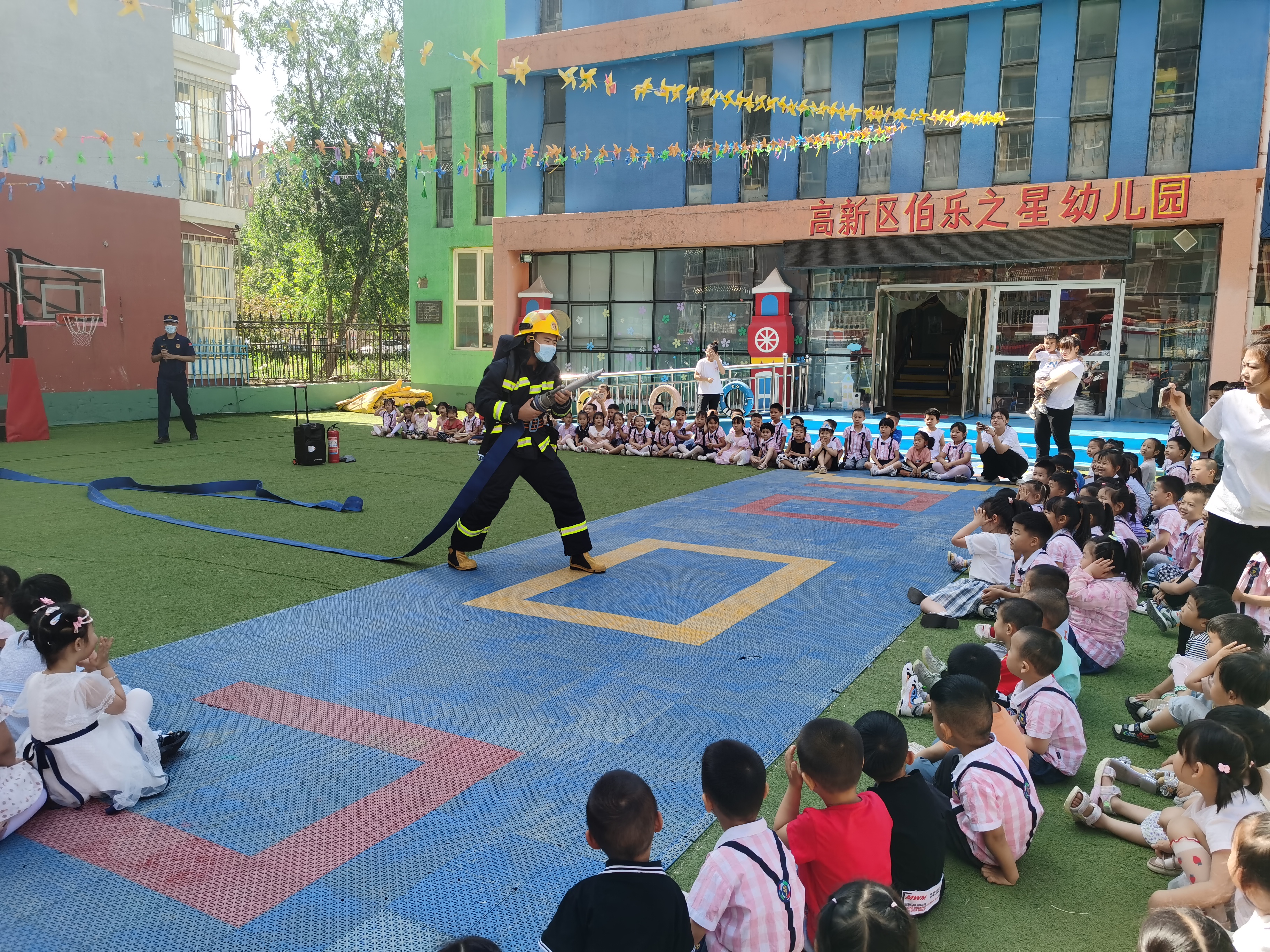 为切实增强辖区幼儿园师生消防安全意识,提高自防自救能力,6月1日衡水高新区消防救援大队宣传人员和人民西路消防救援站消防员,带着一份特殊的“礼物”走进辖区幼儿园,为幼儿园师生开展消防安全宣传培训活动。