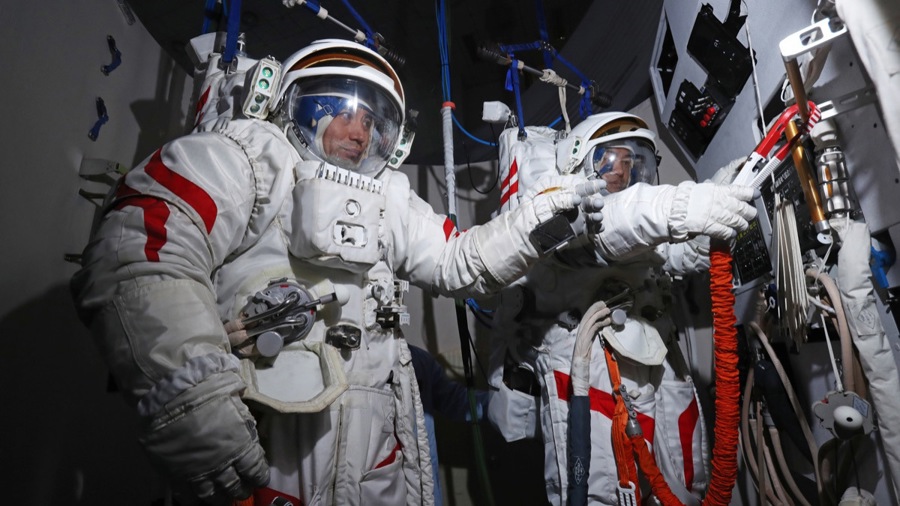 林西强介绍,针对这些特点,在完成通用训练科目的基础上,主要从以下三个方面对神舟十四号乘组进行了针对性强化训练:一是完成了问天舱、梦天舱进驻状态设置和三舱工作生活以及健康保障、物资管理、站务管理等训练,乘组具备了三舱在轨驻留技能;二是完成了小机械臂操作、利用问天气闸舱出舱活动和遥操作实验舱交会对接等训练,乘组具备了完成空间站建造任务技能;三是针对三舱实(试)验项目增多的情况,完成了约30项空间实(试)验项目及平台相关操作训练,乘组具备了开展相应科学实(试)验的技能。