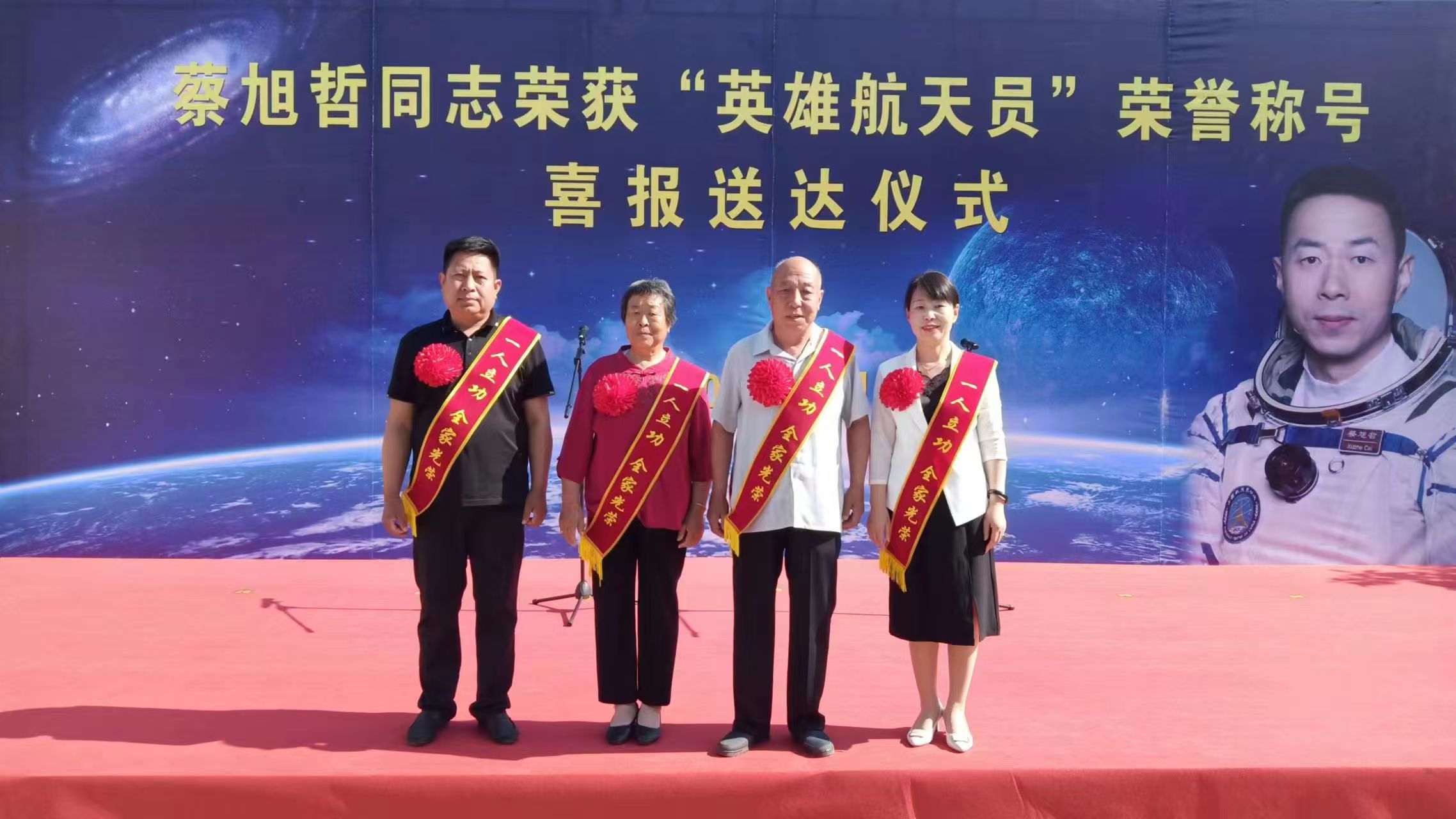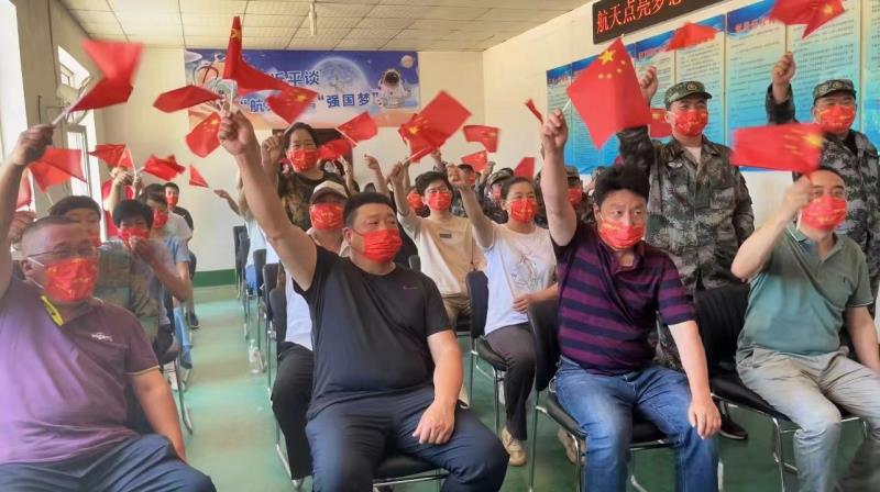 上午11时许,当看到电视中宣布神舟十四号载人飞船与火箭成功分离,进入预定轨道,飞行乘组状态良好,发射取得圆满成功时,乡亲们挥旗庆祝,掌声四起,欢呼声不断,沉浸在一片欢腾之中。直播结束后,乡亲们都不愿散去,回忆着蔡旭哲的成长经历,谈论着观看直播后的心情。