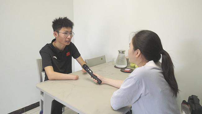当记者再次来到刘晓彬家中,他刚刚做完手术不久,回到阔别已久的家乡与亲人团聚。与赛场上那个不畏强手、顽强拼搏的身影不同,眼前这位带着眼镜,帅气阳光的大男孩略显腼腆。当和记者谈起这些年的经历和运动生涯,他的眼神中透露着一股坚定。