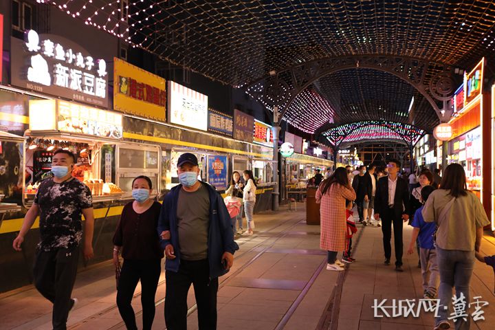 随着夜色加深,公园北门外的老火车步行街成了张家口烟火气最浓的地方。