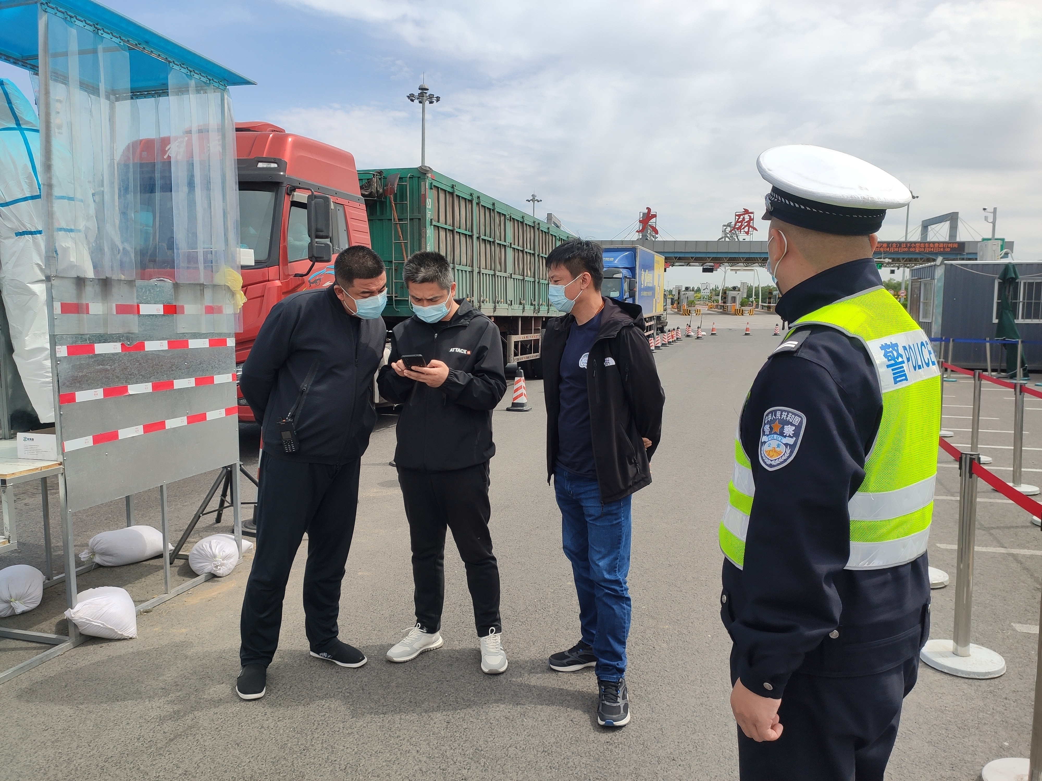 图为崔建刚(左二)在交通防疫站点认真查验。