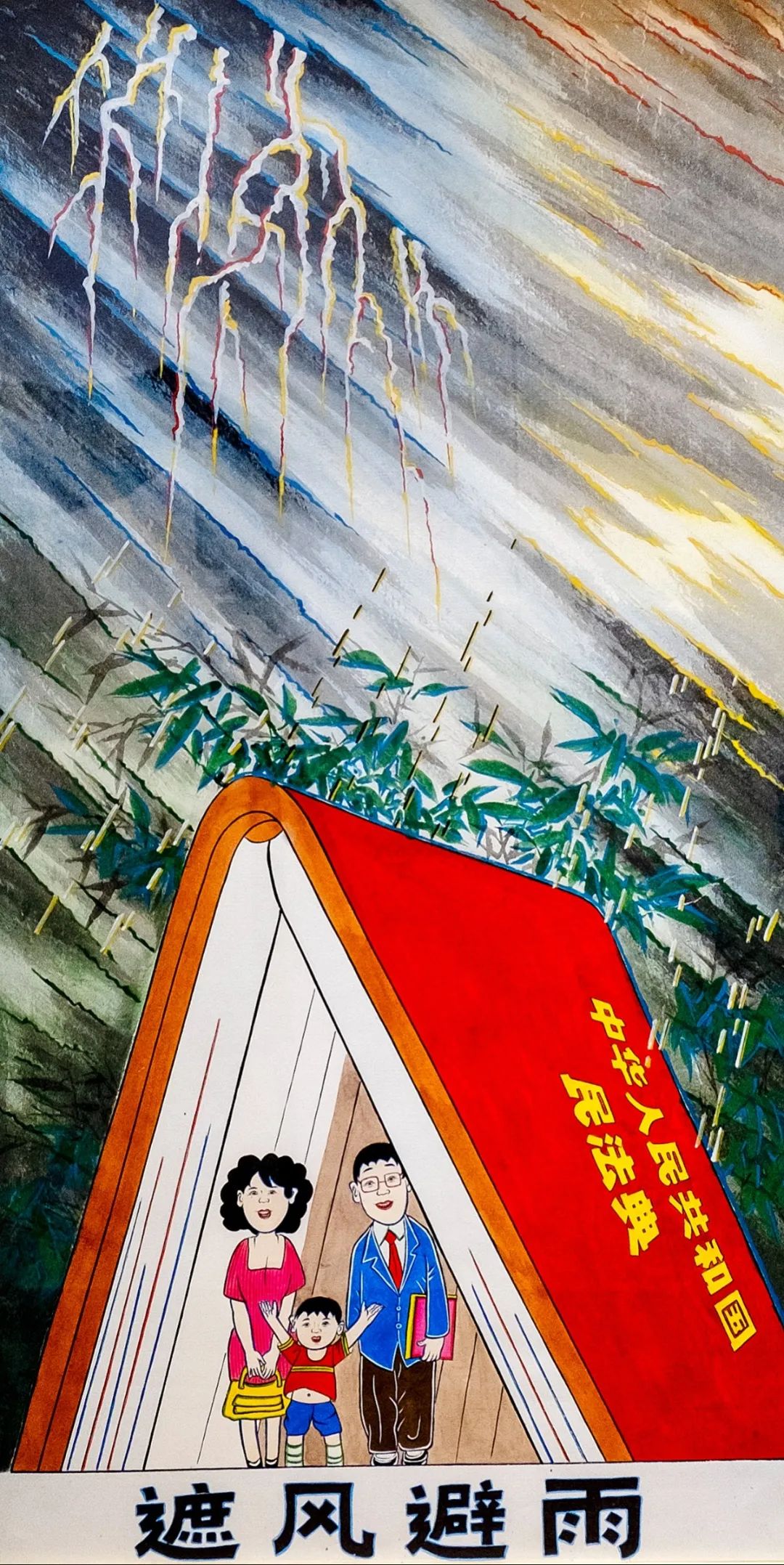 作品表现了《民法典》是所有家庭调解纠纷、化解风险的“利器”。