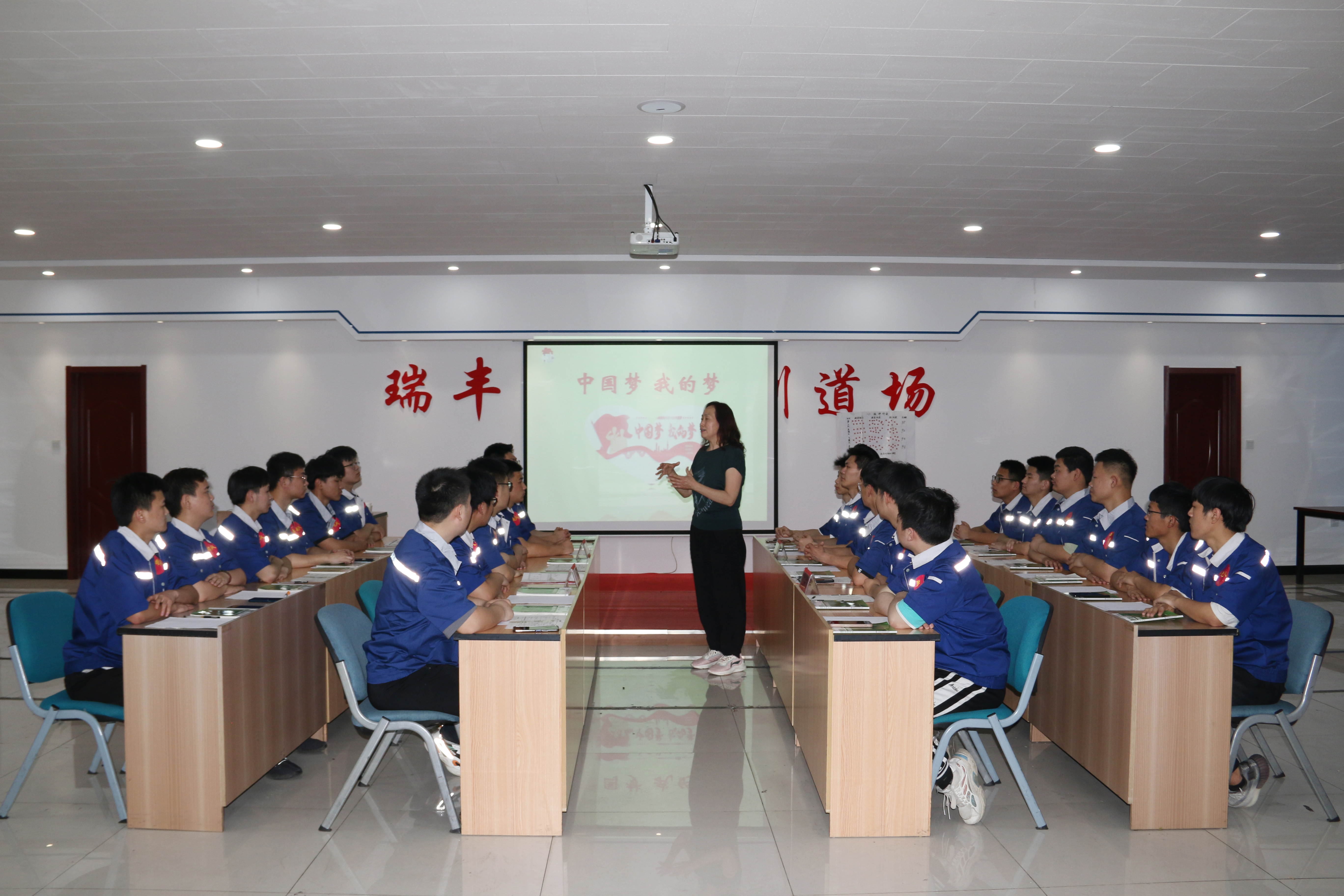 为激发学生的爱国情、强国志、报国行,引导学生制定适合自己的职业规划,思政教师团队把新时代强国战略和职业生涯规划相结合,把二次开发的思政精品课“中国梦 我的梦”带到企业课堂。同时,邀请已成为瑞丰科技有限公司公司技术部部长的科工优秀毕业生王旭进入课堂,以自己的亲身感受启迪学弟们,只有把握时代机遇和区域经济发展带来的机遇,立足本人实际,脚踏实地,精益求精,才能成就自己的精彩人生。