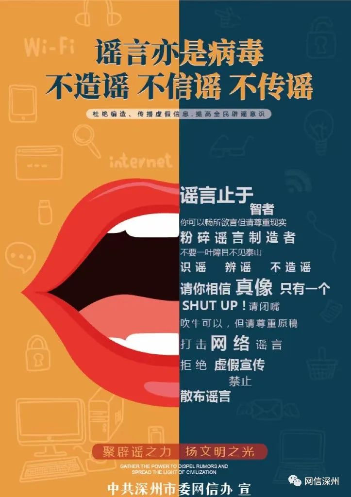 拒绝网络谣言,维护网络文明,不做键盘侠,不做传谣者,主动举报网上有害信息,争当网络举报志愿者!