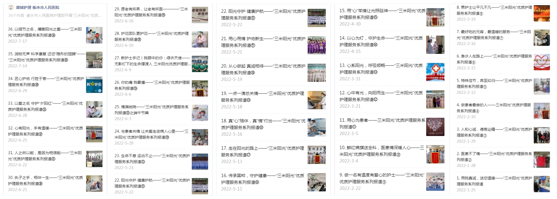 在“湖城护理 衡水市人民医院”微信公众号每期都推出“三米阳光”优质护理服务系列报道。