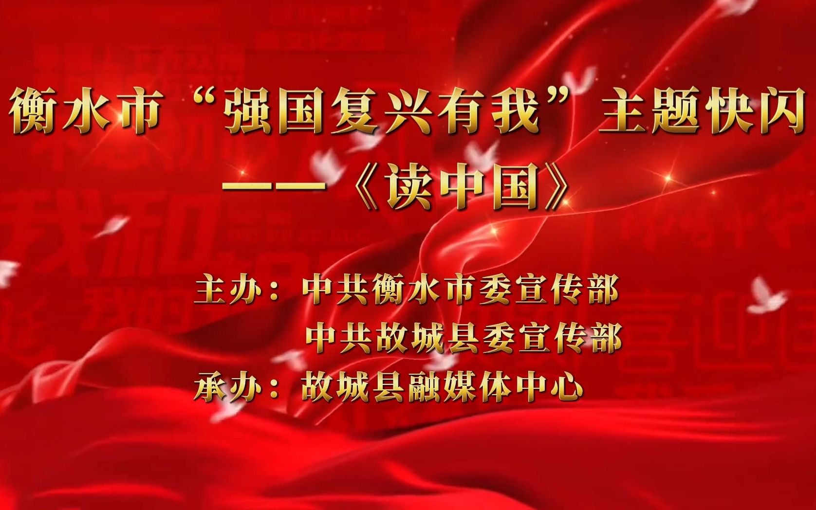 点击观看短视频。编辑:闫海雪 来源:衡水学习平台 点赞 +1 微博 微信 我要评论 发布 相关推荐 衡水市“强国复兴有我”主题快闪丨景县《强国一代有我在》 衡水速览 2025-10-01 衡水市“强国复兴有我”主题快闪丨故城县《红旗的一角》 衡水速览 2025-09-30 衡水市“强国复兴有我”主题快闪丨故城县《读中国》 衡水速览 2024-09-23 衡水市“强国复兴有我”主题快闪丨安平县《强国一代有我在》 衡水速览 2024-08-20 衡水市“强国复兴有我”主题快闪丨《强国一代有我在》 壹现场 2022-09-30 衡水市“强国复兴有我”主题快闪丨《强国一代有我在》 大美枣强 2022-08-03 热门 一天 三天 一周 1 “星火照初心·笔墨传精神”创作采风系列活动在衡水市安平县启动 2 衡水市药品不良反应监测中心获全国通报表扬 3 武邑县多部门联合开展“全国肿瘤防治宣传周”主题宣传活动 4 百余件(套)冀派内画精品走进甘肃瓜州 5 衡水德州市场监管联动 优化外资营商环境 6 姚黄魏紫初绽蕊 满园春色惹人醉 衡水中华公园牡丹花开了 7 礼乐润童心 古训焕生机——孙敬学堂以沉浸体验激活传统文化 8 武邑:义诊进社区 健康“零距离” 9 衡水市第三人民医院开展肿瘤防治宣传周义诊活动 10 守护市民“脚下安全” 衡水主城区沥青路面病害集中整治见实效 1 雄商高铁河北段开始联调联试 2 舞蹈、绘画、音乐……衡水公益课堂今起报名 “双课堂”点亮全民艺术生活 3 【小牛大凯帮办团】衡水:露天垃圾池拆了 崭新垃圾桶“上岗” 4 景县王千寺镇中心小学举办校园科技节活动 5 全国首批试点收官 安平丝网产业提质成效显著 6 【最美夕阳红】琴弦伴岁月 国粹润夕阳 ——衡水退休教师刘存水奏响晚年幸福曲 7 以水为基强韧性 治水兴城护民生 ——武强县探索北方县域防洪排涝与水安全保障路径 8 “机械联动+人工补扫” 衡水主城区打响“飞絮治理战” 9 衡水市阜城县漫河镇后李庄村:5天打通35亩大棚“生命线” 10 为营商环境清障 故城县严惩职业投诉敲诈 1 第二十一届京津冀开发区“枣复材杯”乒乓球邀请赛暨招商引资推介会在枣强举行 2 衡水市举办0—6岁儿童孤独症筛查培训班 3 衡水开放大学2026年春季招生即将结束 4 “妈妈你在哪儿” 衡水刘风旭寻找走失18年的母亲盼团圆 5 《互联网平台价格行为规则》正式实施 明确禁止“大数据杀熟” 6 “迁徙有信·文脉有声”衡水湖生态摄影大赛颁奖暨赏花季采风活动圆满举行 7 “武邑红梨”牵手“硬木雕刻” 双IP联动助推农文旅融合与产业升级 8 海报系列||早安衡水 9 衡水滏阳河管理中心:亲近自然 文明露营 共同守护河畔美景 10 新华社评论员:为两岸谋和平 为同胞谋福祉 为民族谋复兴 广告 广告 广告 24小时 1 海报系列||早安衡水 2 习言道|多用一些时间静心读书、静心思考 3 【讲习所·中国与世界】习近平:中越要同心协力 携手同行现代化道路 4 衡水高新区开展“4·15全民国家安全教育日”主题宣传活动 筑牢基层安全防线 5 把安全种子“播”进群众心里 景县开展全民国家安全教育日宣传 6 促进行业发展 景县举办跨境电商培训班 7 数据“生金” 产业焕新 ——景县打造县域数字经济新样本 8 助力家长“从容带娃” “家庭教育进万家”活动走进安陵镇 9 赏花活动开启春日浪漫景县之约 10 上班途中,他们救下七旬老人