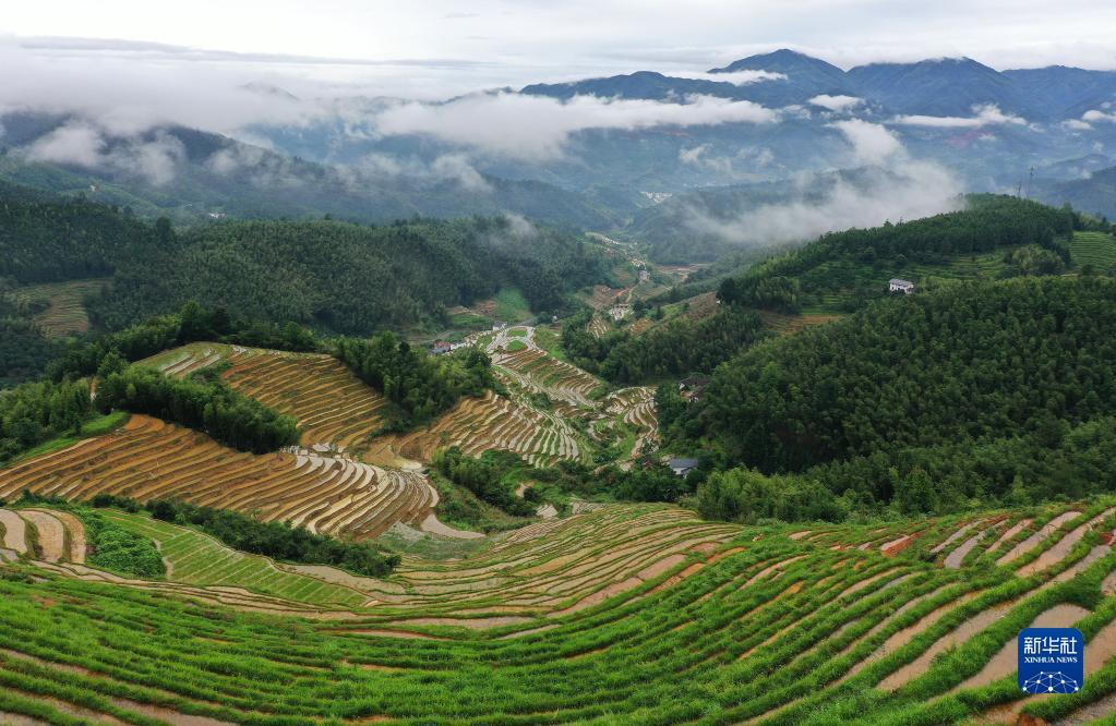 这是江西省赣州市崇义县上堡梯田(2022年6月16日摄,无人机照片)。新华社记者万象 摄